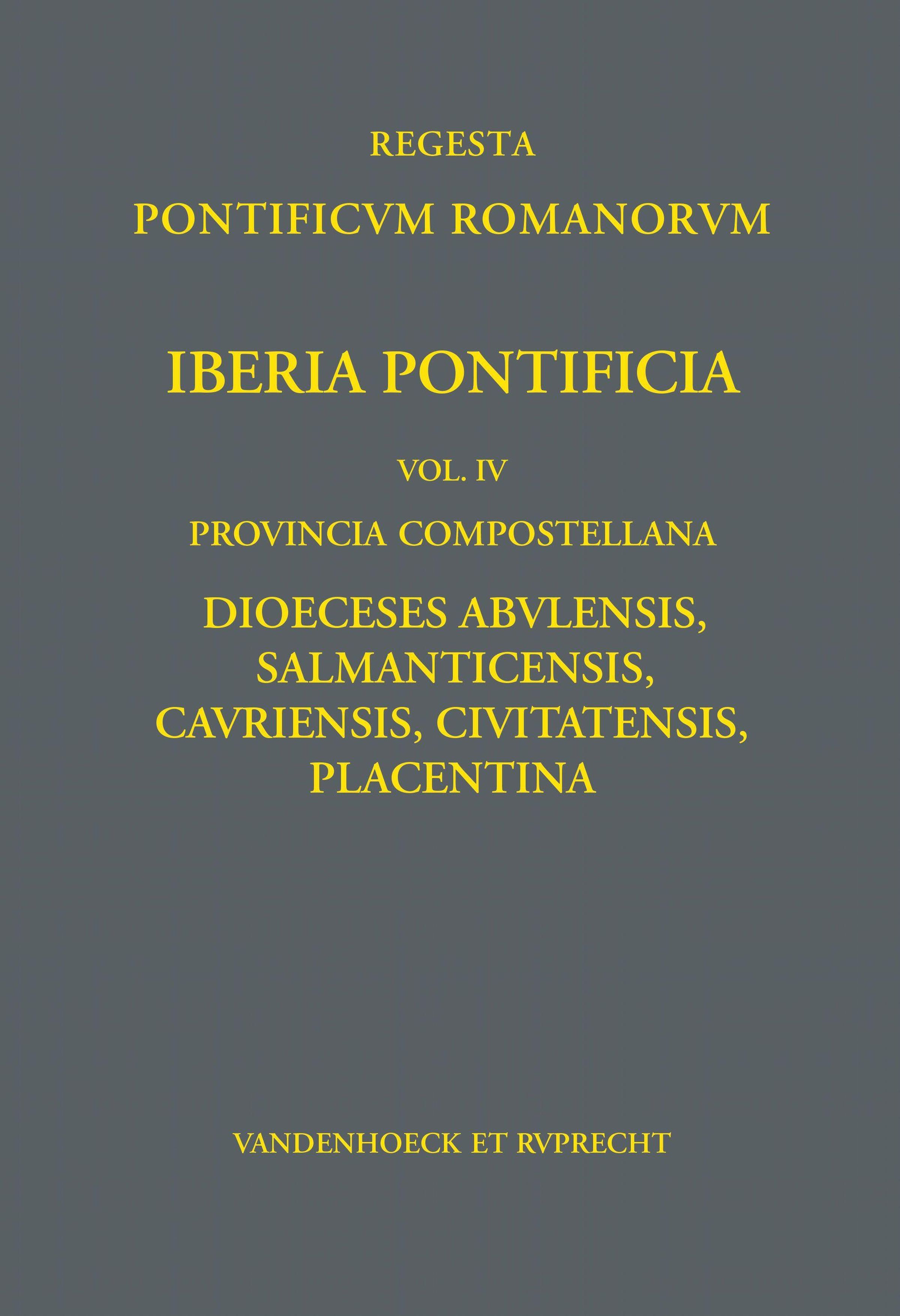 Der vierte Band der Iberia Pontificia erschließt in rund 300 Regesten die Papstbeziehungen der Bistümer Ávila, Salamanca, Coria, Ciudad Rodrigo und Plasencia bis zum Jahr 1198. Die behandelten Diözesen liegen jeweils im westlichen Teil der Königreiche Kastilien und León. Trotz der politischen Grenzen verband die fünf Bistümer nicht zuletzt ihre Zugehörigkeit zur Kirchenprovinz Compostela, die freilich auch zu Streitigkeiten führte. Nach der Eroberung Toledos 1085 ging die Wiedererrichtung kirchlicher Strukturen zunächst einher mit der Neubesiedelung (repoblación) des eroberten Landes. Unter der Leitung des Grafen Raimund von Burgund wurden die bereits in der Antike bezeugten Städte Salamanca und Ávila wiederbesiedelt. Erster Bischof beider Städte wurde Hieronymus, ein Weggefährte des Cid. Nach seinem Tod (1120) erhielten beide Diözesen einen eigenen Bischof. Im späteren 12. Jahrhundert folgte die Errichtung der weiteren Bistümer: im Falle Ciudad Rodrigos gegen den Widerstand Salamancas, im Falle Plasencias gegen den Ávilas. Insbesondere im letzteren Fall haben die Auseinandersetzungen das Papsttum jahrelang beschäftigt. Wie schon in Band I-III werden außer den Papstkontakten der Bischöfe und Domkapitel auch die Papstbeziehungen der Klöster in Regestenform aufbereitet. Das Buch bietet neben dem Nachweis der archivalischen und historiographischen Überlieferung bibliographische Angaben zu den Empfängerinstitutionen sowie historische Einführungen.