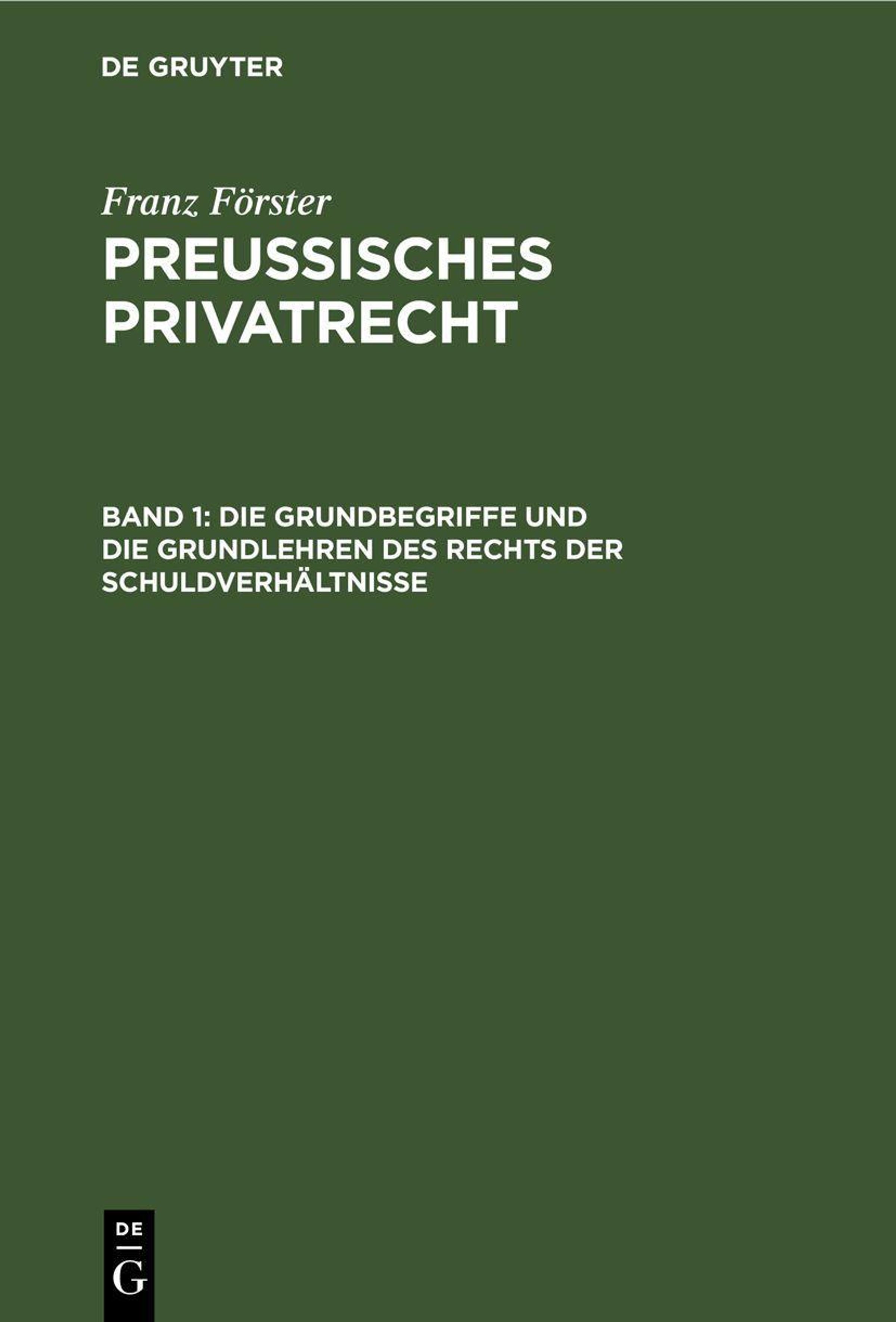Franz Förster: Die Grundbegriffe und die Grundlehren des Rechts der Schuldverhältnisse, Gebunden