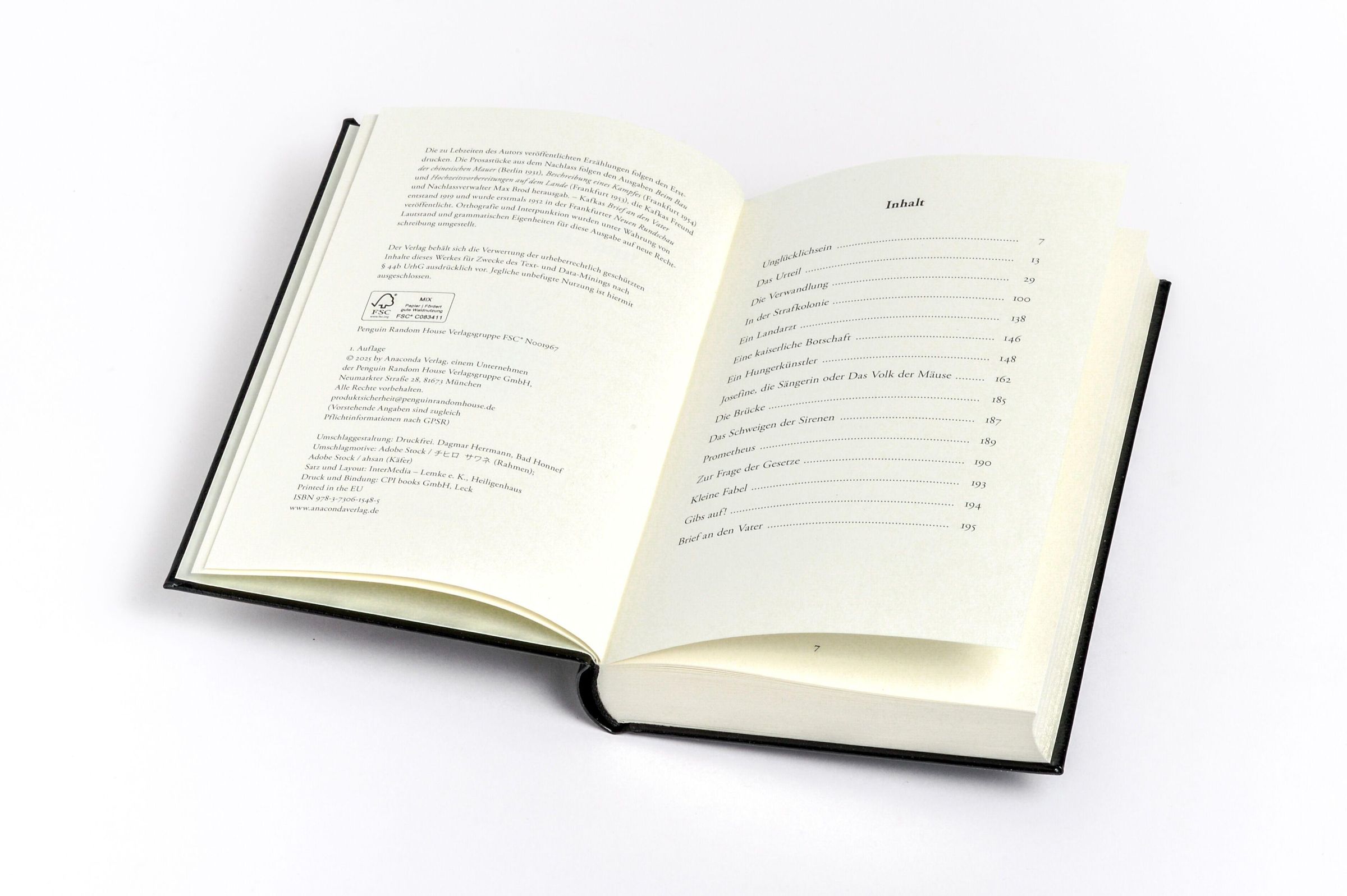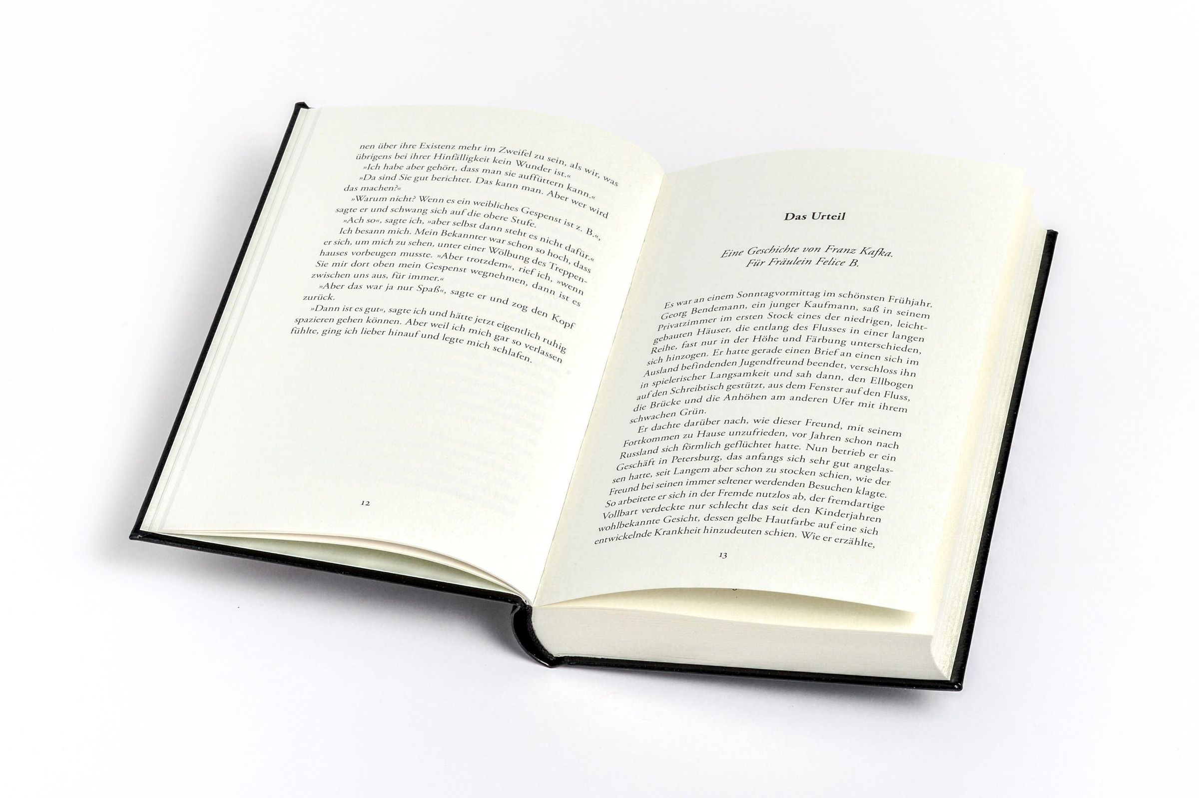 Gregor Samsa erwacht eines Morgens nicht mehr als Mensch, sondern als 'ungeheures Ungeziefer'. In der 'Strafkolonie' graviert ein rätselhafter Apparat den Verurteilten ihr Urteil grausam in die Haut. Im kurzen Text 'Unglücklichsein' tritt an einem Novemberabend unerwartet ein Gespenst ins Zimmer, und über den jungen Kaufmann Georg Bendemann wird ein vernichtendes väterliches 'Urteil' ausgeprochen. Im 'Brief an den Vater' konfrontiert Kafka uns mit einer schonungslosen autobiografischen Selbst- und Vateranalyse. Kafka fasziniert wie kein anderer deutschsprachiger Autor der Weltliteratur bis heute. Dieser in Cabra-Leder gebundene Band mit geprägtem Cover enthält 14 Erzählungen und den berühmten Brief: