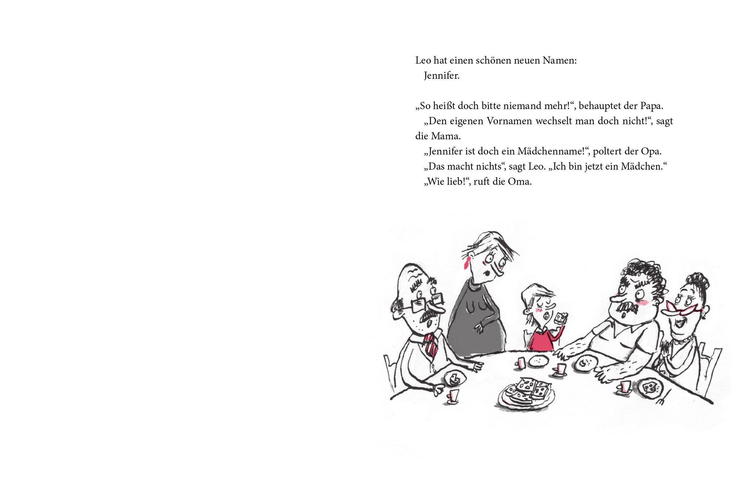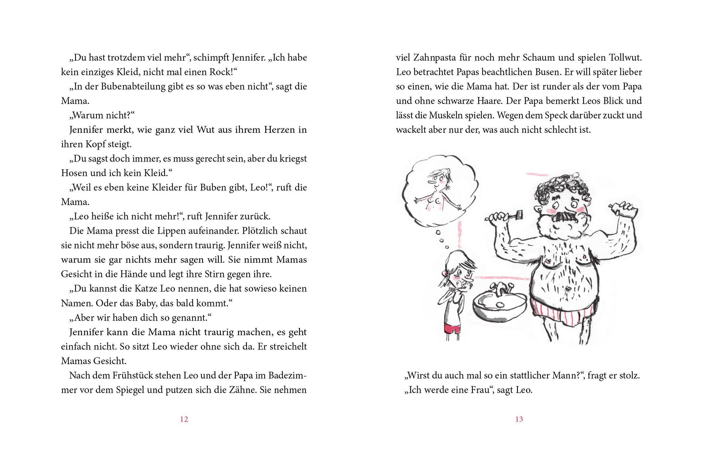 Nur die Erwachsenen kapieren es erst mal nicht und glauben immer noch, sie sollte weiterhin Leo sein, ein Bub. Dabei müssten sie sich nur ein Beispiel an der Katze nehmen. Die interessiert das alles gar nicht. Und so nehmen Jennifer und ihre Freunde die Angelegenheit eben selbst in die Hand.
