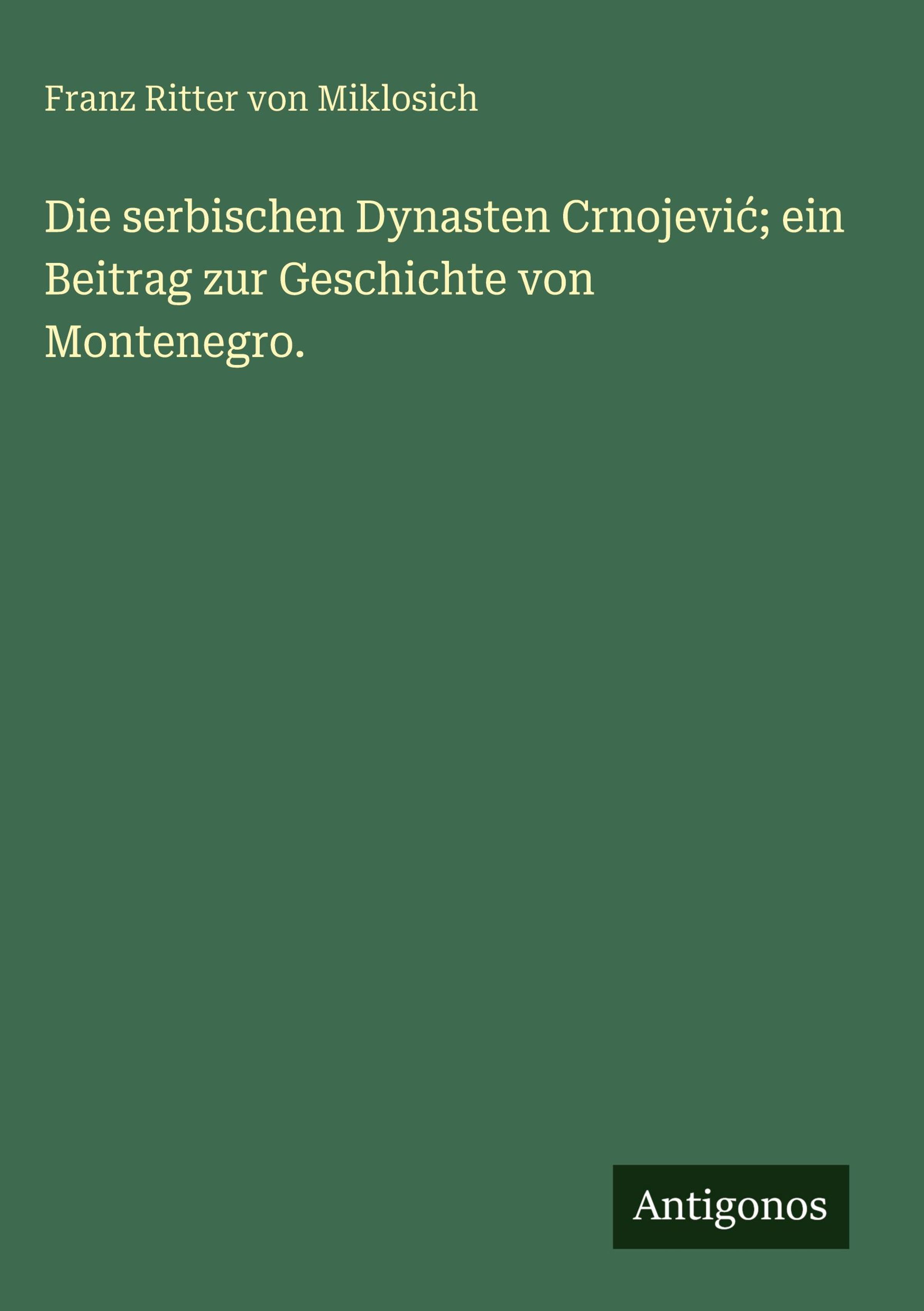 Franz Ritter Von Miklosich: Die serbischen Dynasten Crnojevi¿; ein Beitrag zur Geschichte von Montenegro., Gebunden