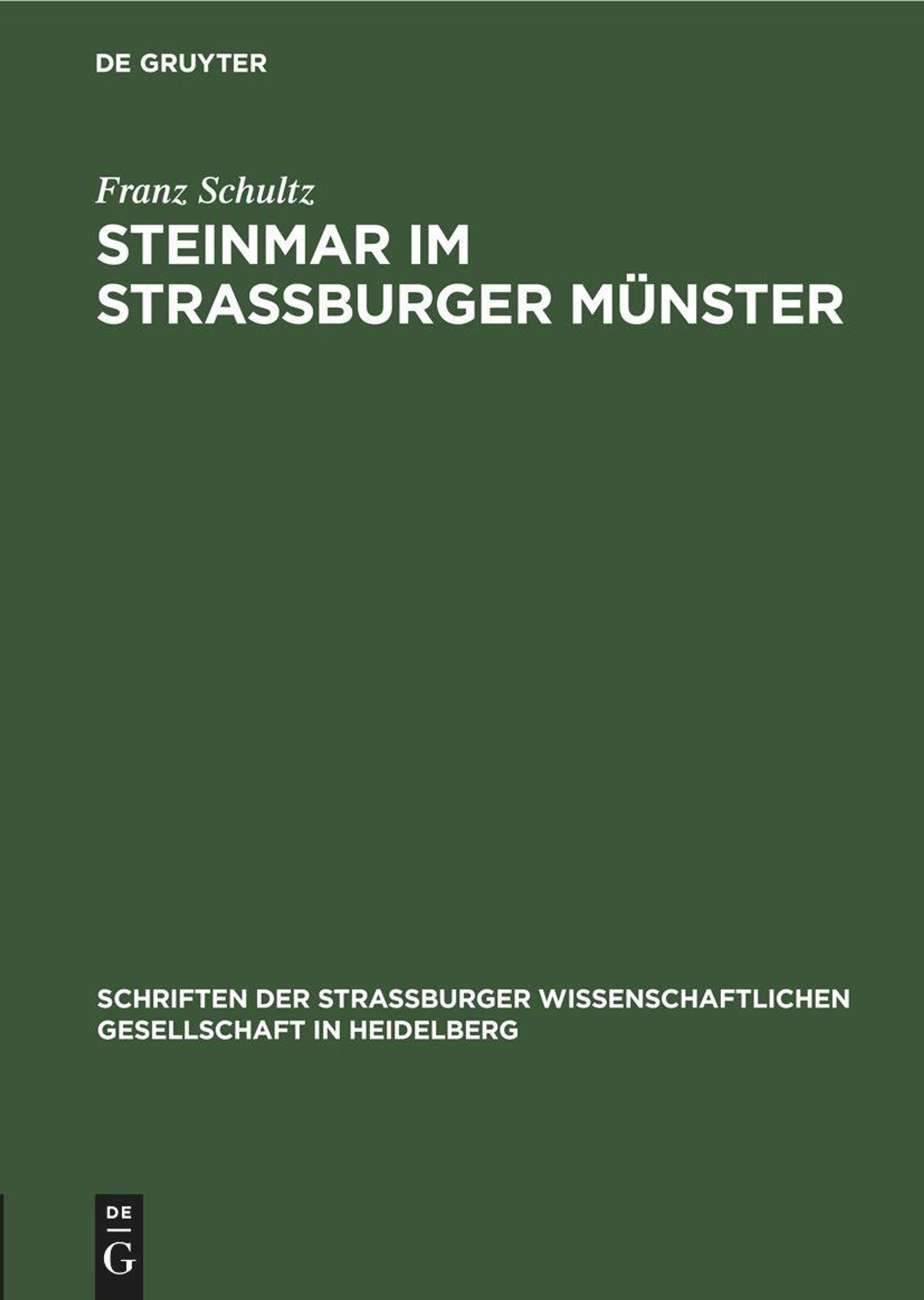 Franz Schultz: Steinmar im Straßburger Münster, Buch, Buch