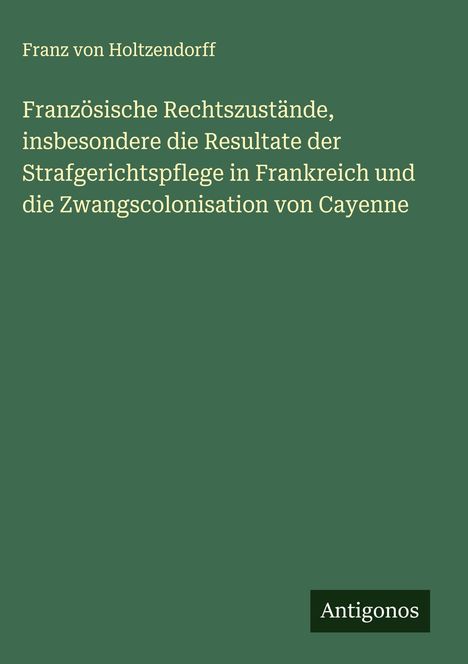 Franz Von Holtzendorff: Französische Rechtszustände, insbesondere die Resultate der Strafgerichtspflege in..., Gebunden