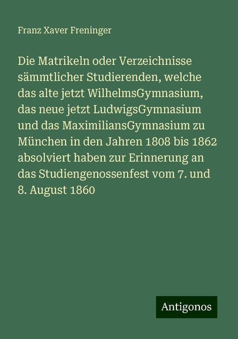 Freninger, F: Matrikeln oder Verzeichnisse sämmtlicher Studi