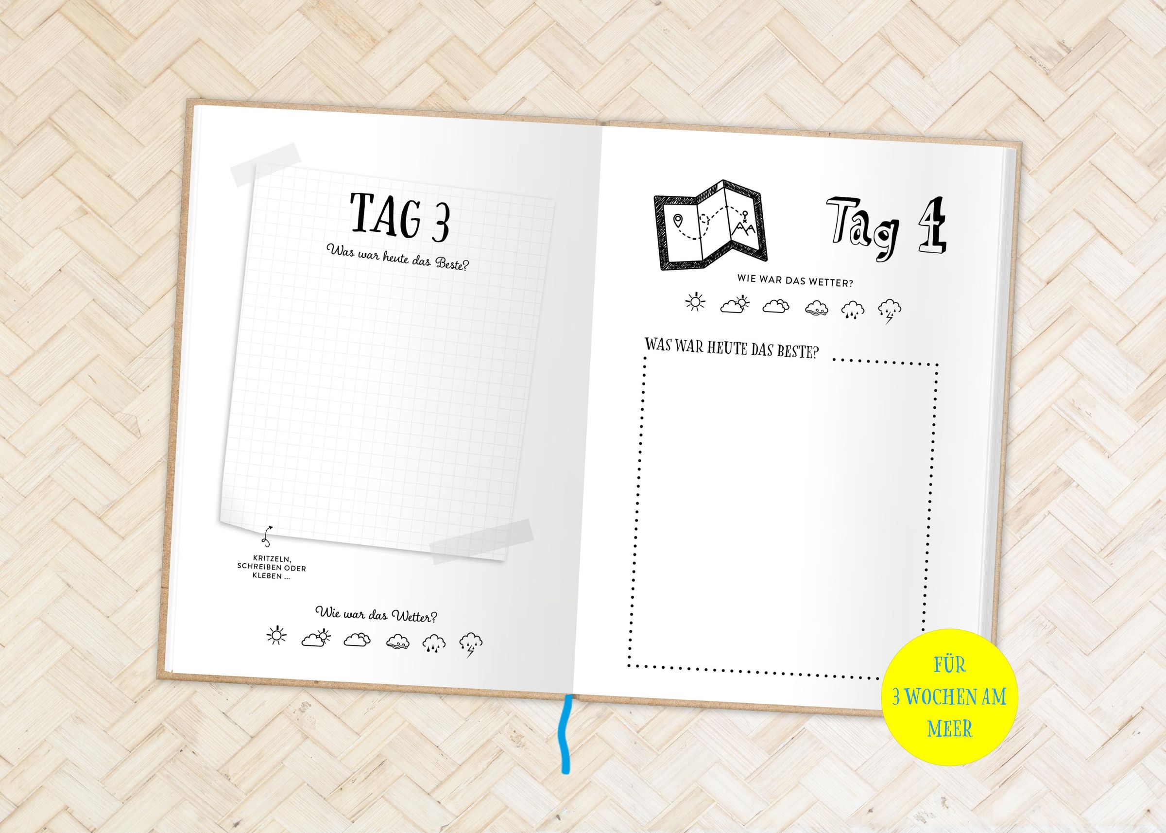 • Das besondere Reisetagebuch fürs Handgepäck | Urlaub am Meer für bis zu 3 Wochen zum Gestalten und Erinnern | Mitmachbuch für die Ferien ab 6 Jahre | mit praktischen Leseband