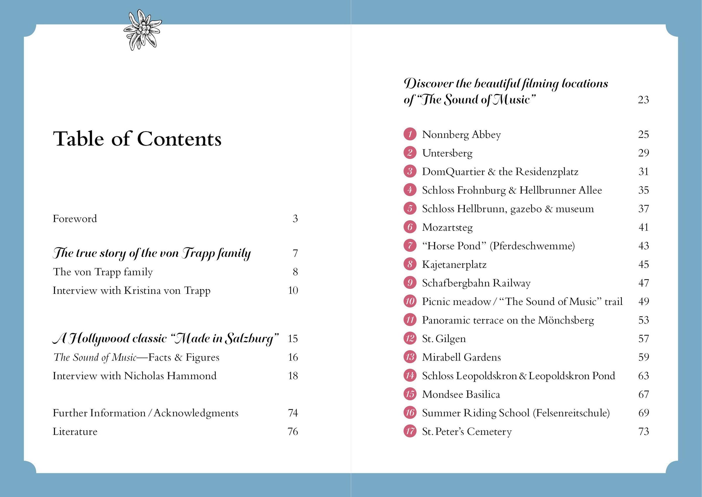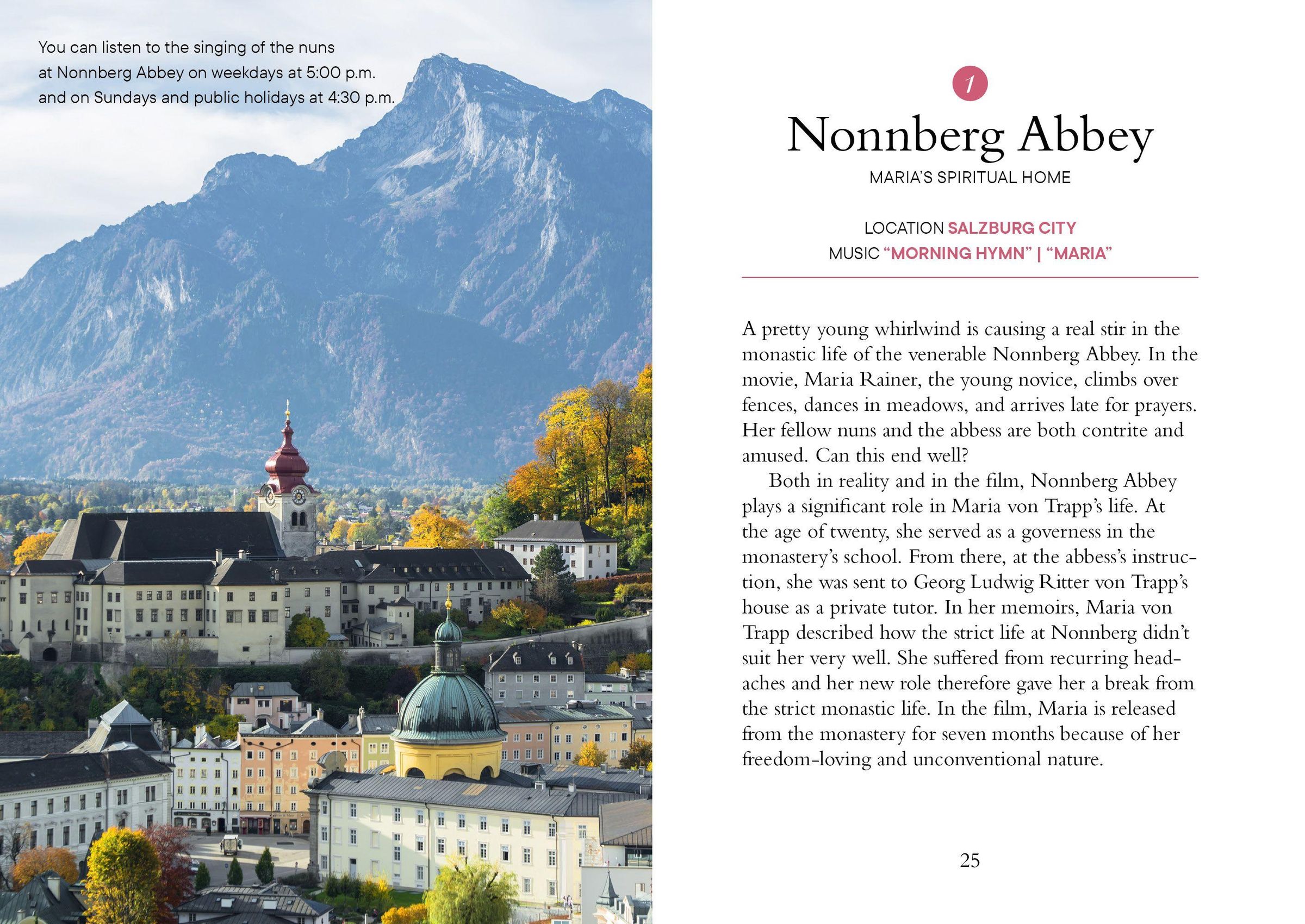 These are legendary scenes that continue to captivate audiences: Julie Andrews as Fraulein Maria dancing with the children entrusted to her through the Mirabell Gardens, singing in front of the backdrop of Hohenwerfen Castle, or walking down the aisle with Georg von Trapp (Christopher Plummer) in the Basilica of Mondsee. The book leads to the famous filming locations and tells their stories. It serves as a charming companion for 'The Sound of Music' fans and as essential reading for anyone interested in the Trapp family. At the same time, it is the perfect souvenir and gift from a trip to Salzburg.