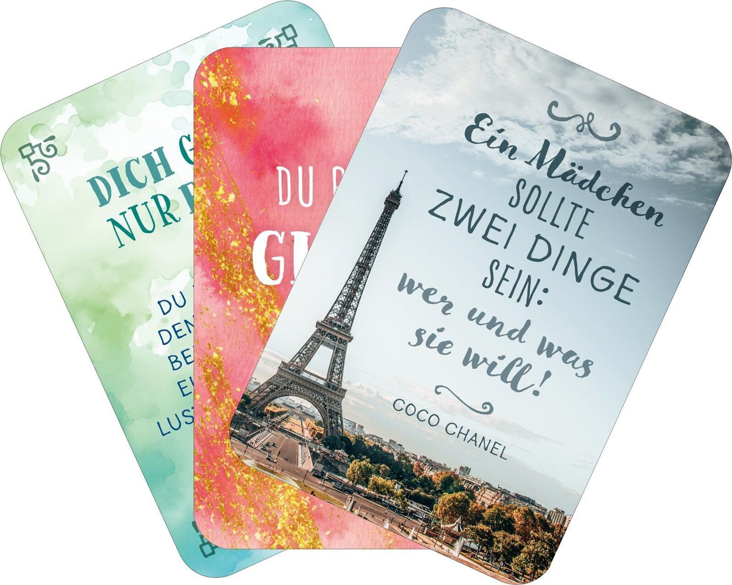 - **Tägliche Motivation:**Als kleines Ritual jeden Tag ein Kärtchen ziehen und mit positiver Energie starten