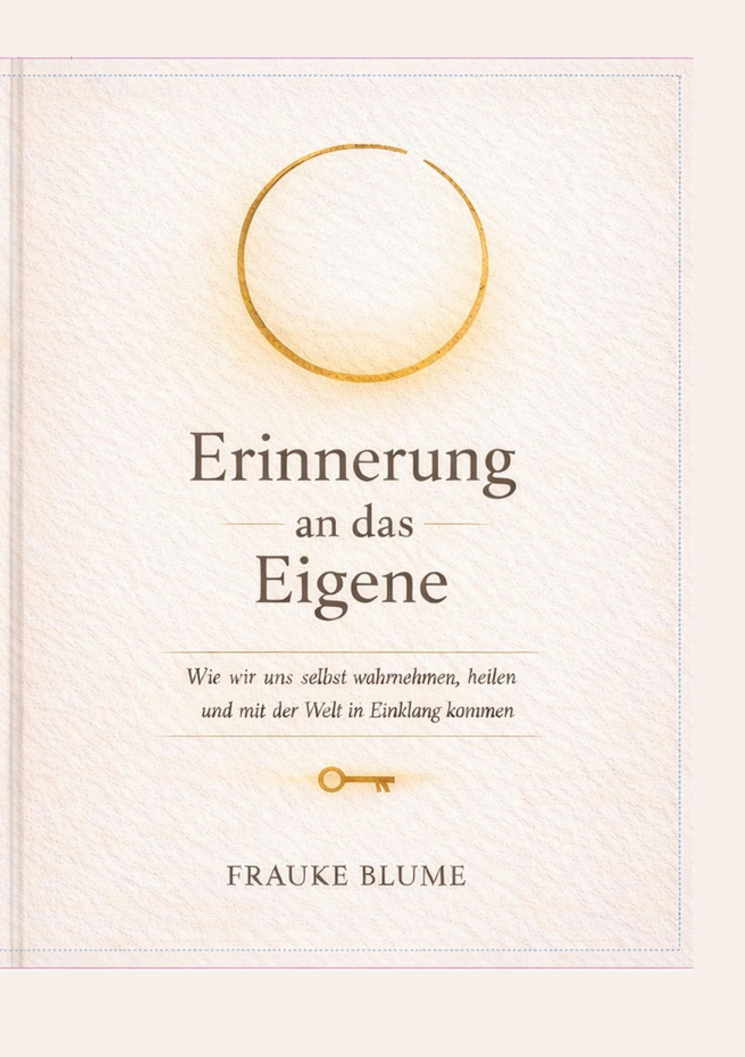 „Erinnerung an das Eigene“, darunter ein Schlüssel. Autor: Frauke Blume. Oben ein goldener Kreis., Buch