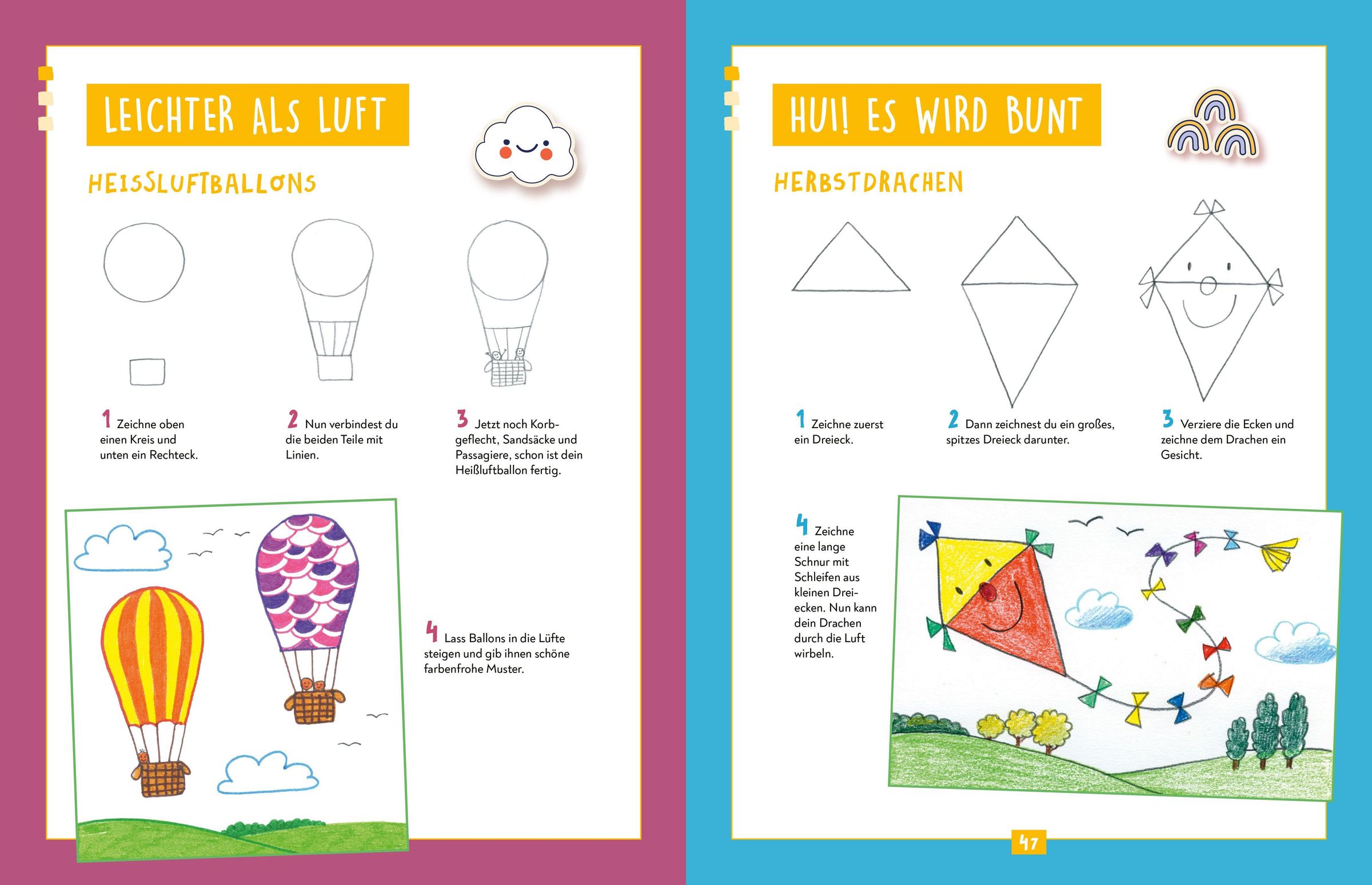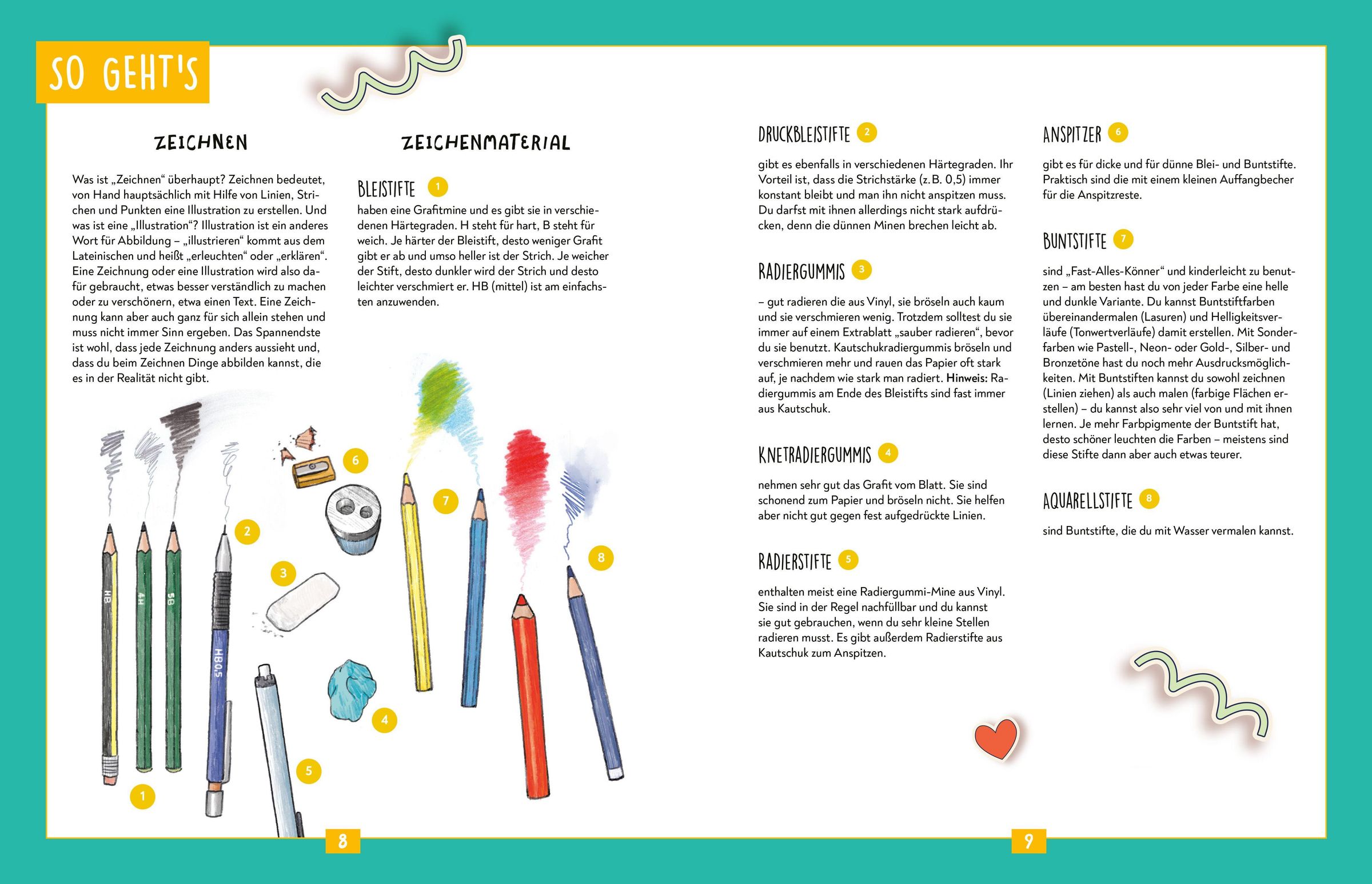 • Über 40 Zeichenideen Schritt für Schritt erklärt. Buntstifte und Bleistift zum Sofort-Loslegen