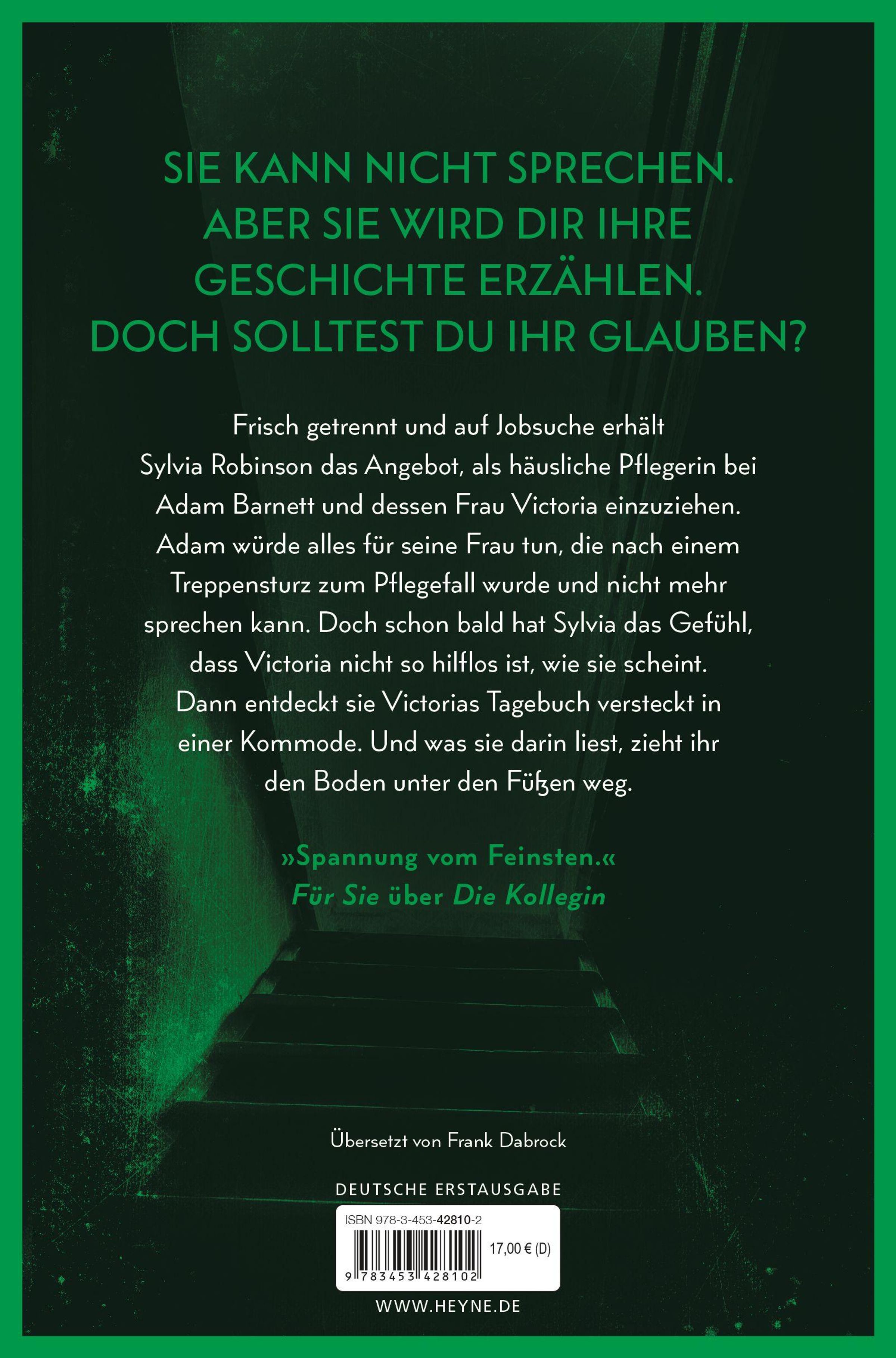 Sylvia Robinson wird im Haus der Barnetts als private Pflegekraft eingestellt. Nach einem Unfall benötigt Victoria Barnett rund um die Uhr Betreuung. Sie kann weder gehen noch sprechen und ist an ihr Bett im obersten Stockwerk des Hauses gefesselt. Daher hat ihr Mann Sylvia als Unterstützung hinzugeholt. Doch schon bald hat Sylvia das Gefühl, dass Victoria nicht so hilflos ist, wie sie scheint. Dann entdeckt sie Victorias Tagebuch versteckt in einer Kommode. Und was sie darin liest, zieht ihr den Boden unter den Füßen weg.