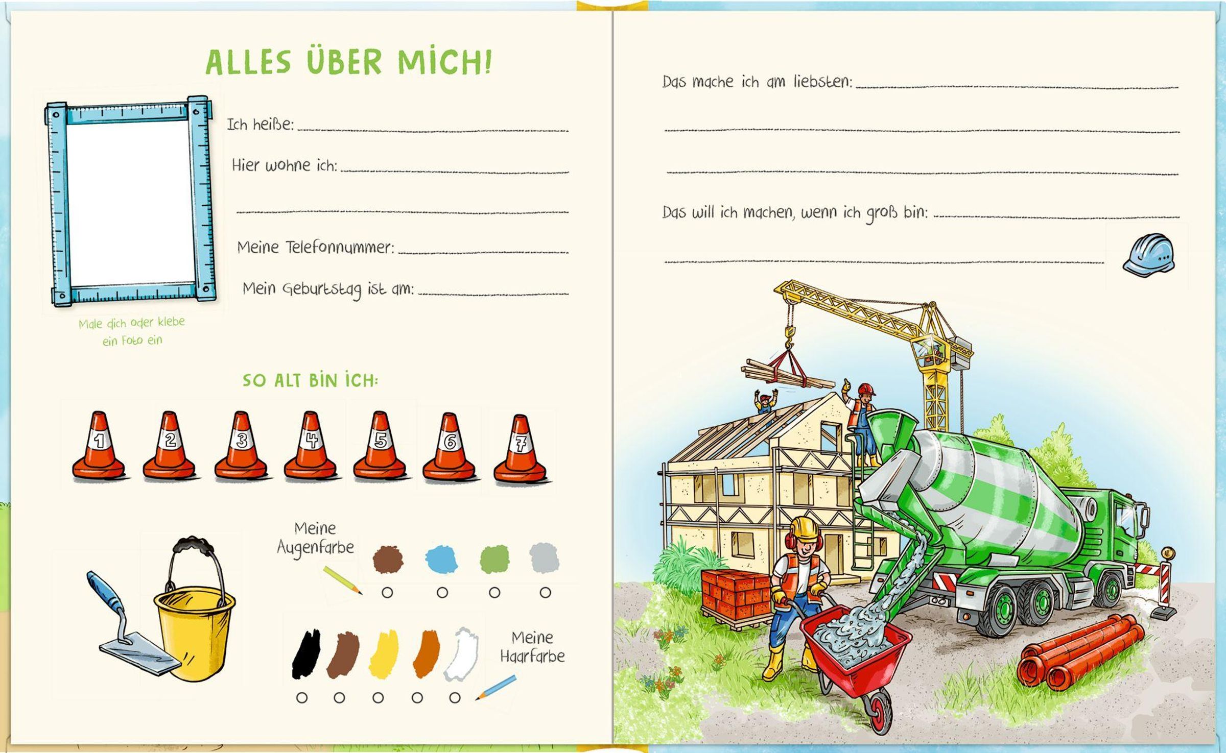 Ein aufregendes Freundebuch für alle kleinen Baustellen-Fans. Hier entdeckt jeder seine ganz persönliche Lieblingsseite: ob Bagger, Kran oder Betonmischer. Jedes Kind hat vier Seiten zum Eintragen mit vielen Möglichkeiten zum Ankreuzen und Ausmalen.