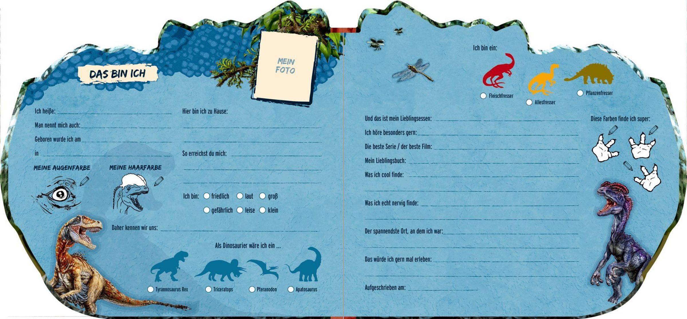 Dieses einzigartige T-Rex-Freundebuch begeistert alle kleinen Dino-Fans ! 41 Freundinnen und Freunde können sich auf den beeindruckend illustrierten Seiten verewigen. Das konturgestanzte Hardcover in T-Rex-Kopf-Form mit Metallicfolie macht dieses Buch zu einem echten Hingucker.