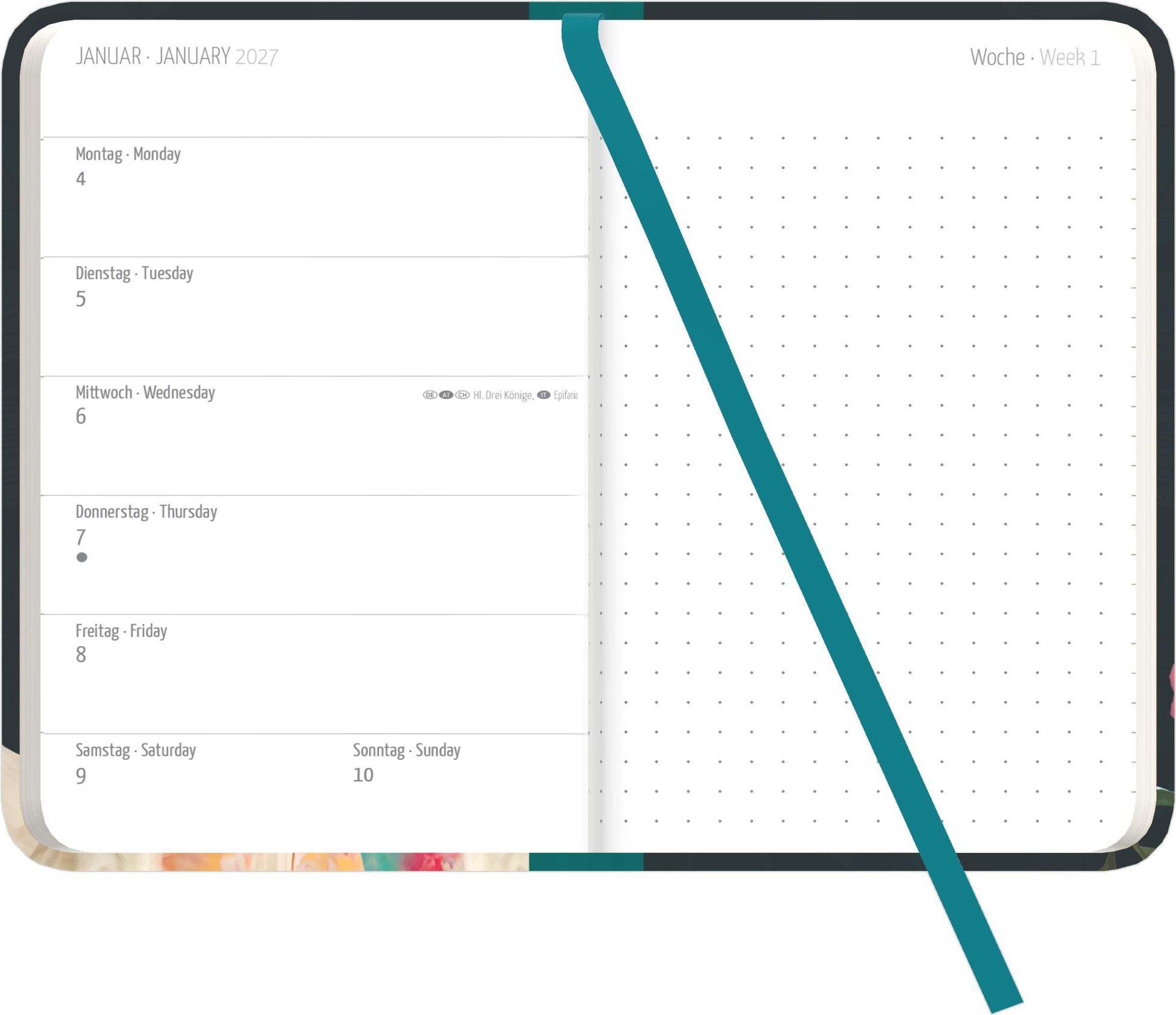 1 Woche pro Seite + viel Platz für Notizen