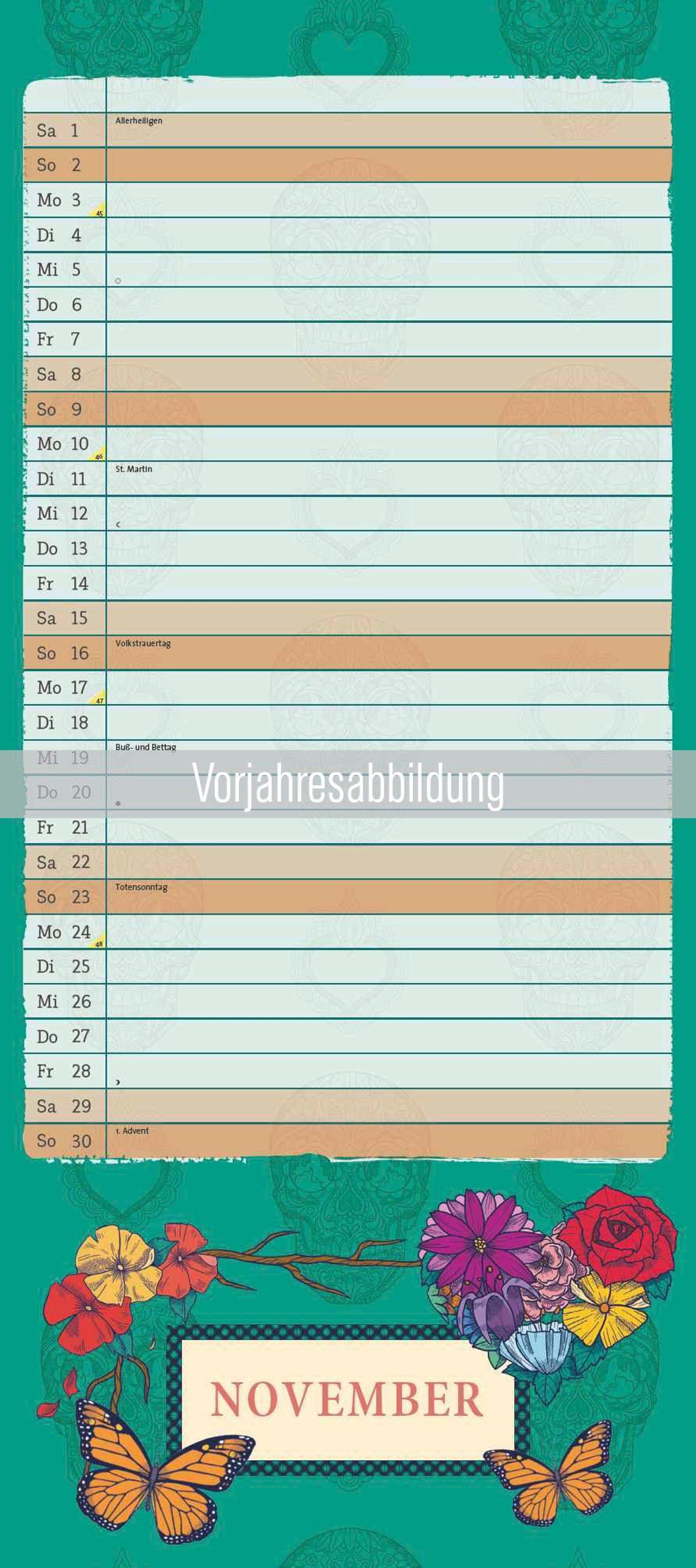 Hochwertige Verarbeitung: Robuste Spiralbindung und stabiles Kalendarium -- langlebig und einfach umzublättern.