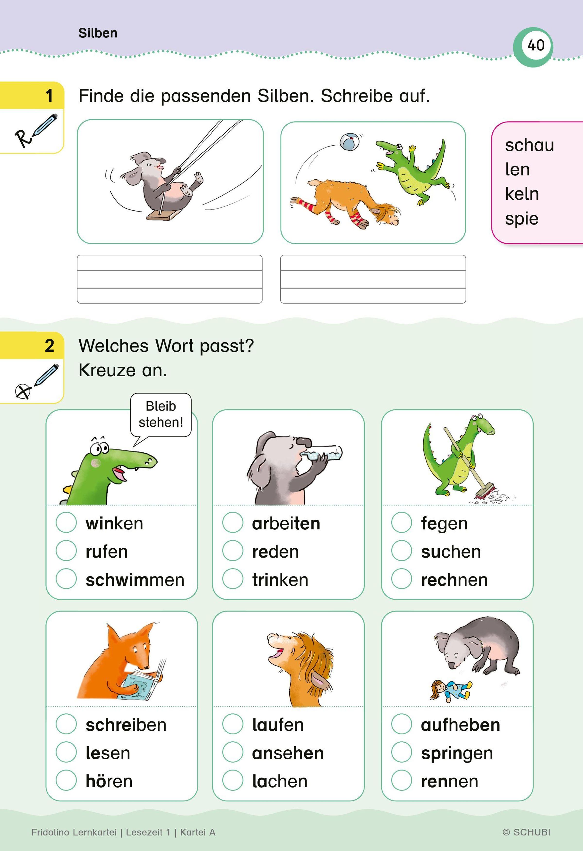 Fridolino-Lernkartei. Lesezeit 1. Schuljahr (Box A), Blätter