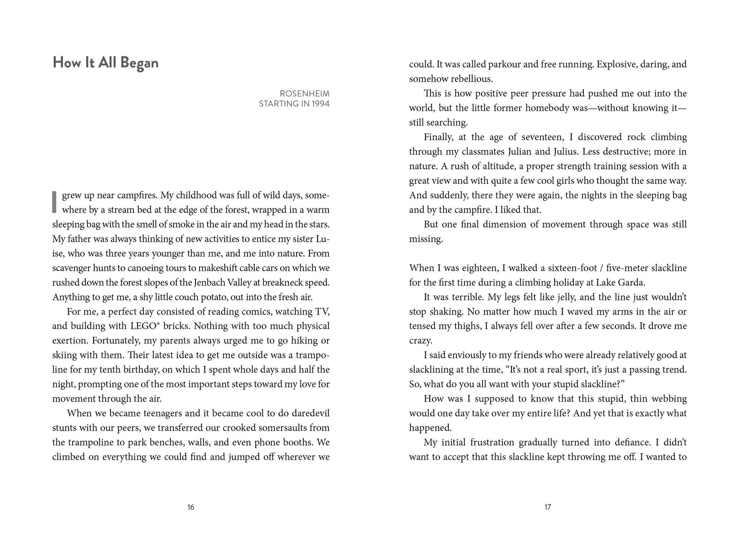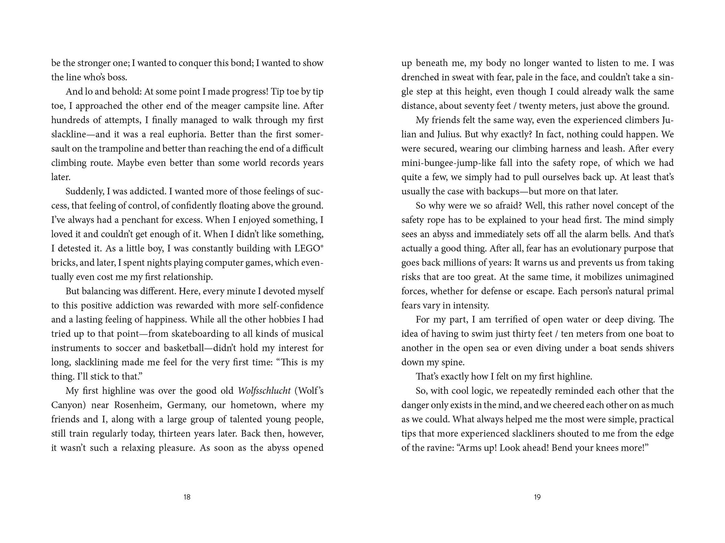In Above the Abyss, author and professional slackliner Friedi Kühne dives into his slackline journey, from doing tricks as a kid on trampolines and park benches to trying his first highline at 18 years old. Along the way, Kühne learns how to train his body to achieve balance, find focus, and stay resilient. His love of slacklining takes him all over the world as he competes for world records, achieves personal milestones, and ultimately discovers how physical and mental limits can be overcome if we don't allow our fears to hold us back.