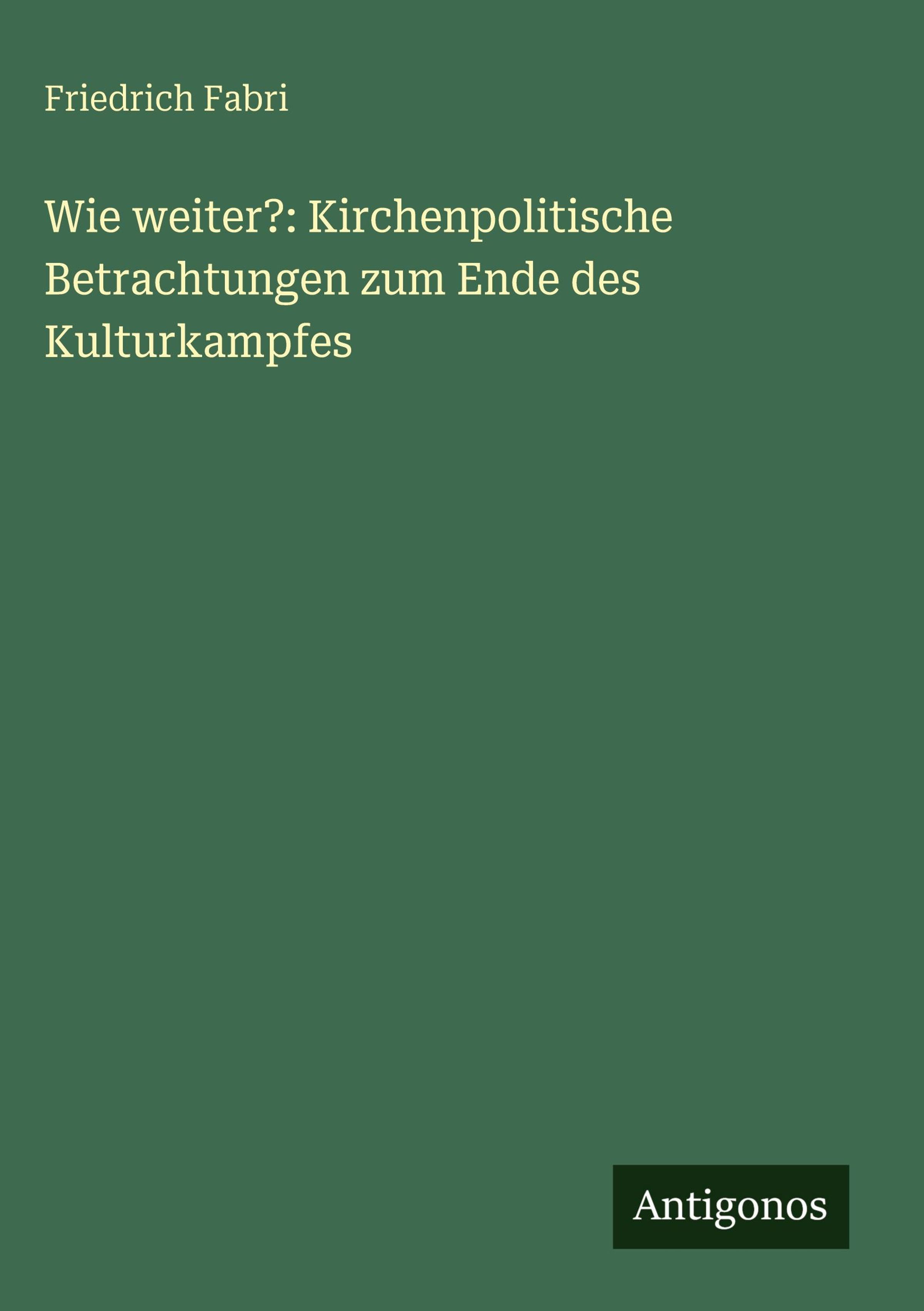 Friedrich Fabri: Wie weiter?: Kirchenpolitische Betrachtungen zum Ende des Kulturkampfes, Gebunden