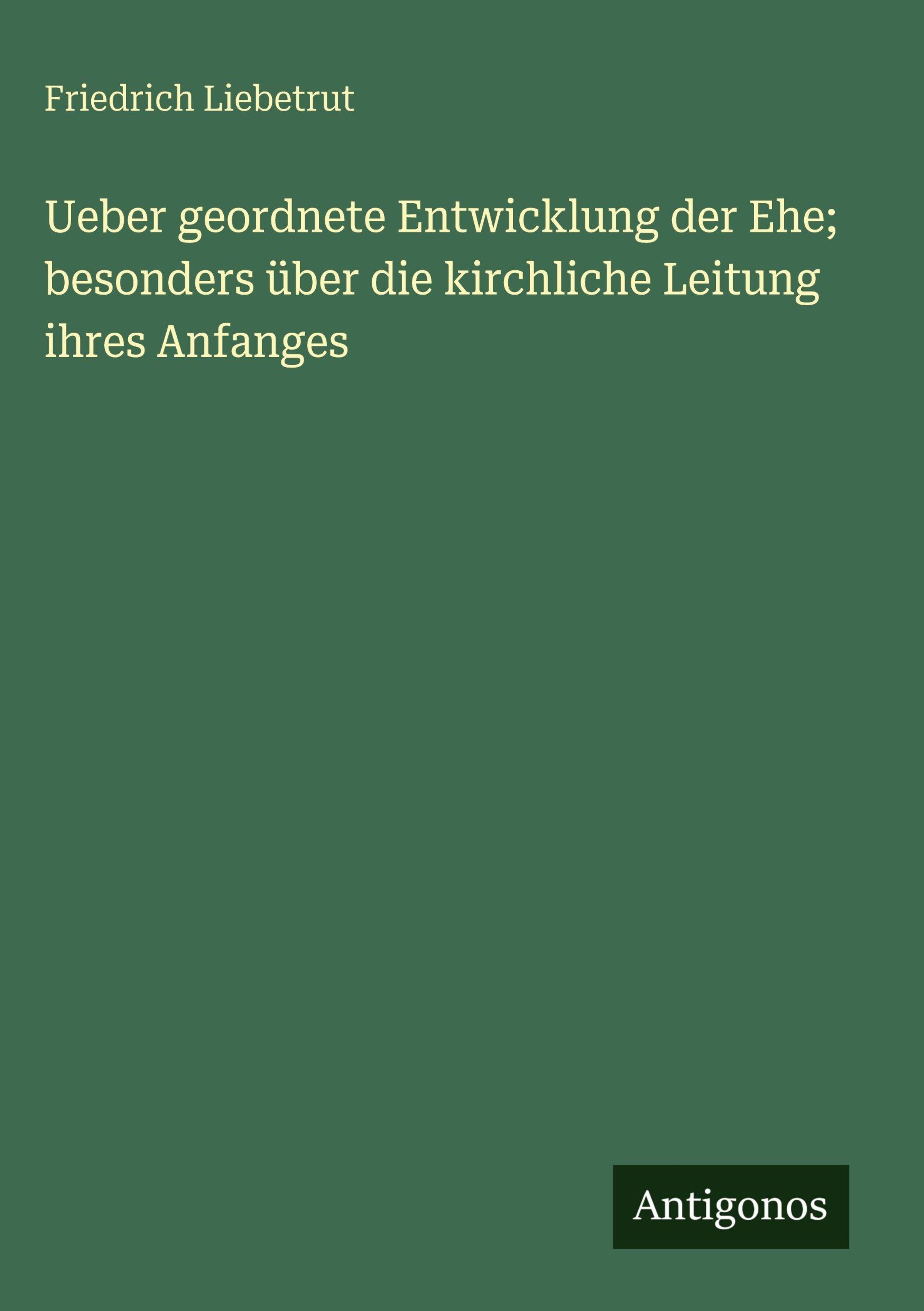Friedrich Liebetrut: Ueber geordnete Entwicklung der Ehe; besonders über die kirchliche Leitung ihres Anfanges, Gebunden