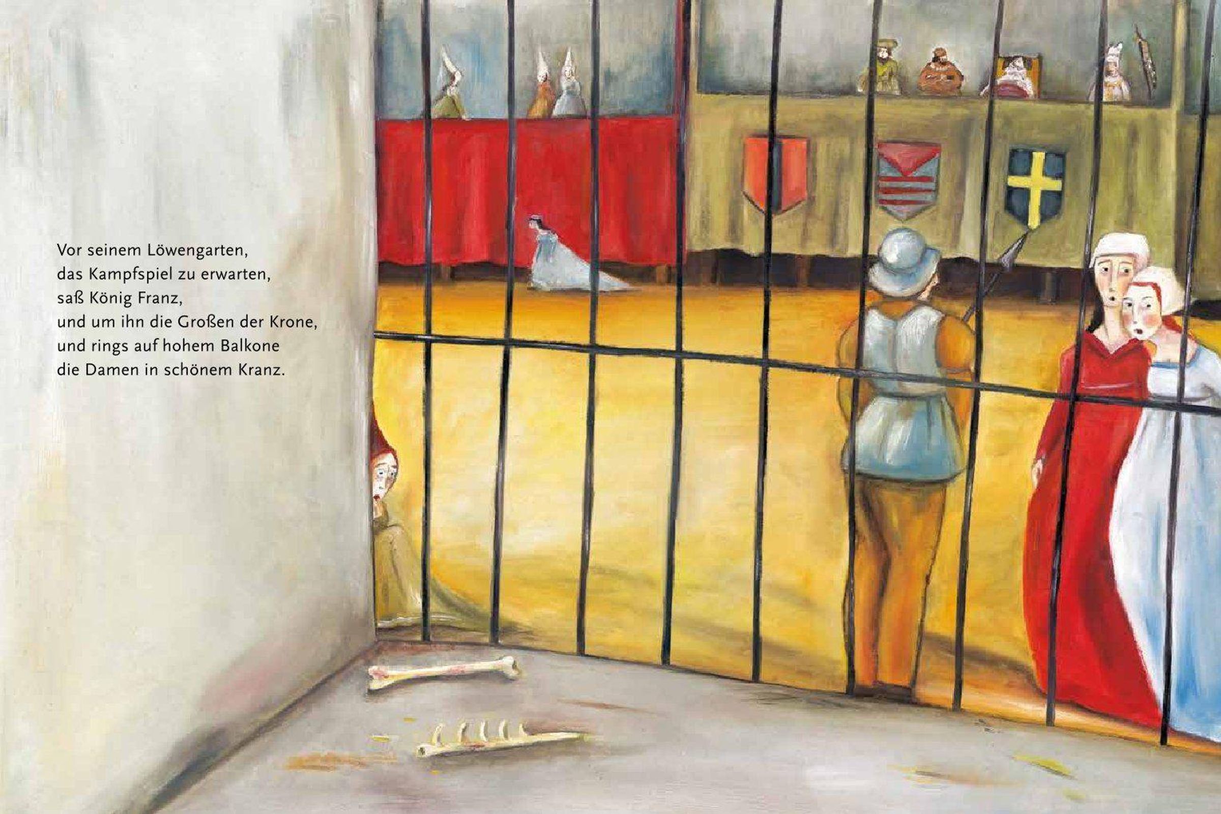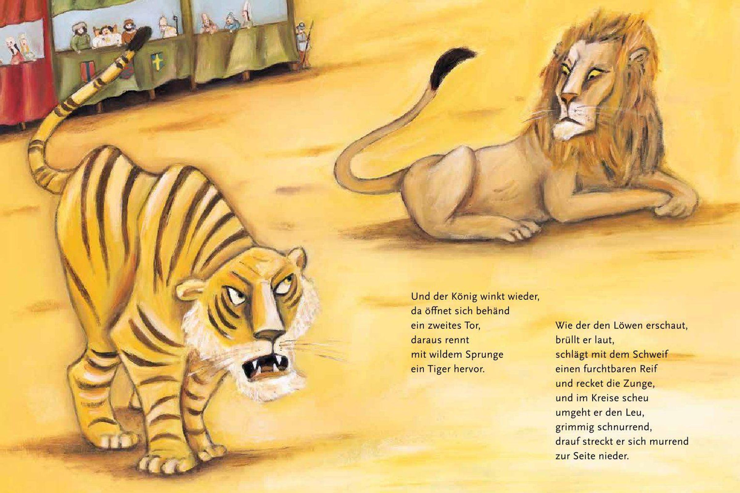 'Vor seinem Löwengarten, das Kampfspiel zu erwarten, saß König Franz ...' Und bald schon balgen sich brüllende Leoparden, Löwen und Tiger vor dem erlauchten Publikum um die Wette. Plötzlich aber fällt Fräulein Kunigundes Handschuh mitten zwischen die hungrigen Katzen. Eine willkommene Gelegenheit für die hochmütige Dame, ihren Herzensritter Delorges auf die Probe zu stellen: Zum Beweis seiner Liebe soll er in die sprichwörtliche Höhle des Löwen hinabsteigen und ihr den Handschuh zurückbringen ...