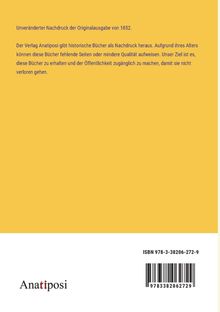 Unveränderter Nachdruck der Originalausgabe von 1852. Der Verlag Anatiposi gibt historische Bücher als Nachdruck heraus. Aufgrund ihres Alters können diese Bücher fehlende Seiten oder mindere Qualität aufweisen. Unser Ziel ist es, diese Bücher zu erhalten und der Öffentlichkeit zugänglich zu machen, damit sie nicht verloren gehen.