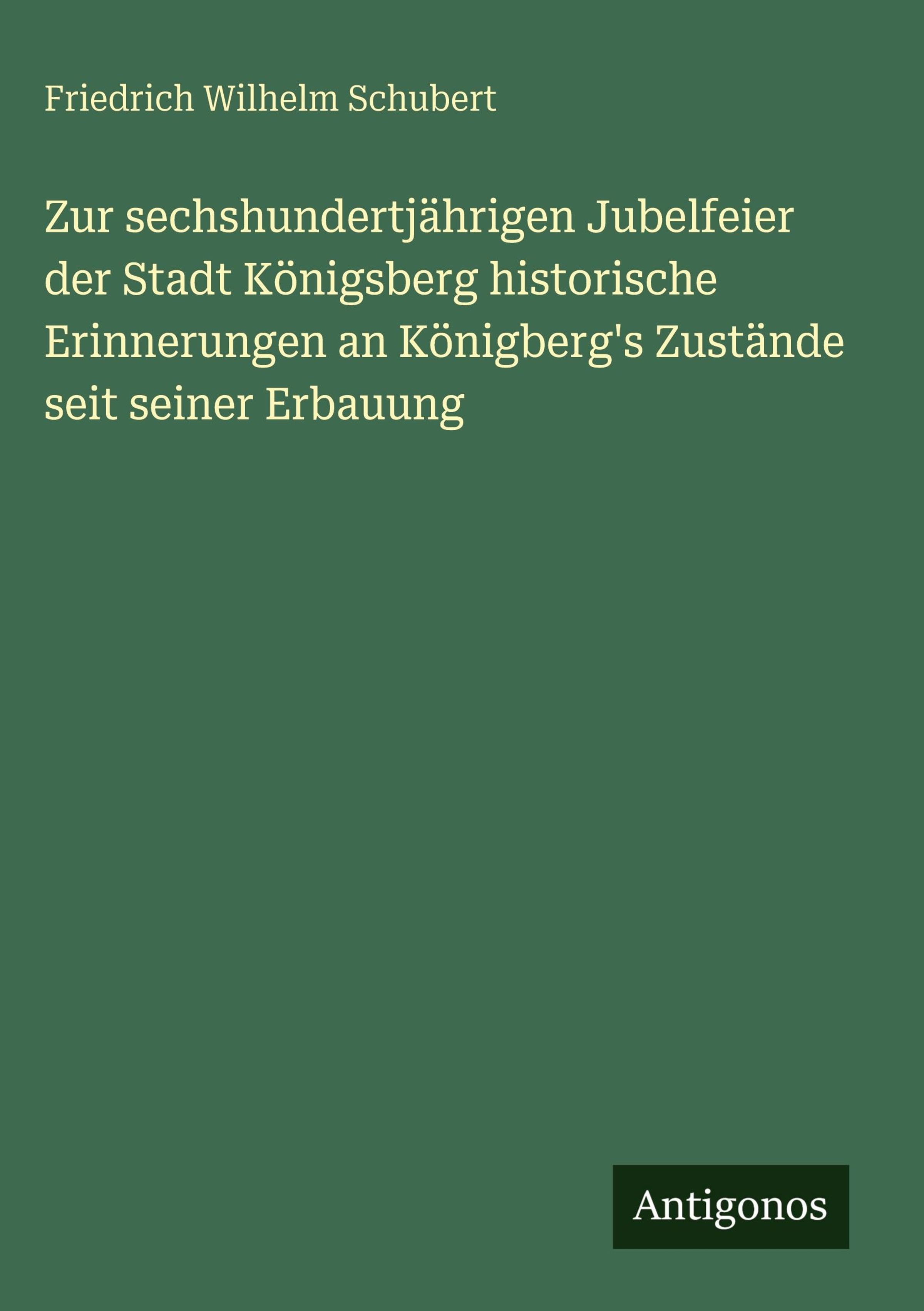 Friedrich Wilhelm Schubert: Zur sechshundertjährigen Jubelfeier der Stadt Königsberg historische Erinnerungen an..., Gebunden