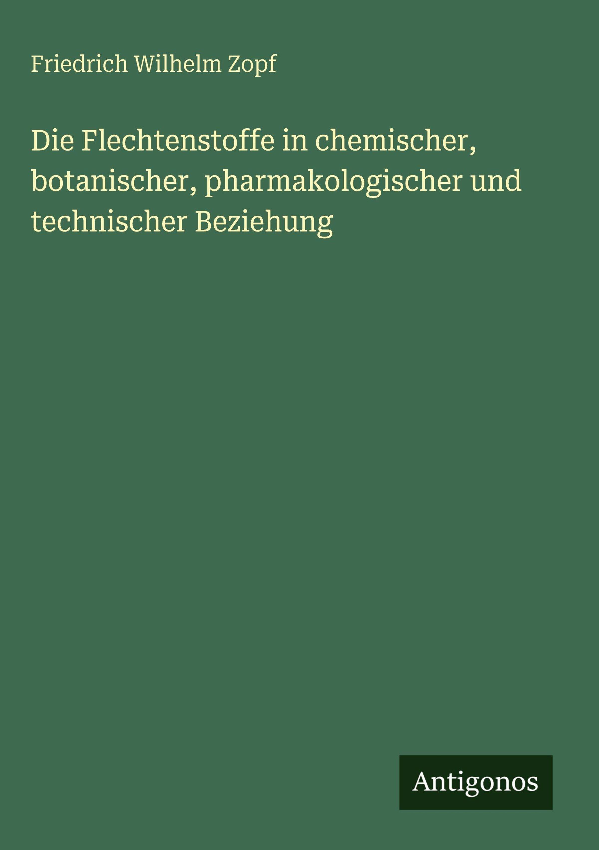 Friedrich Wilhelm Zopf: Die Flechtenstoffe in chemischer, botanischer, pharmakologischer und technischer Beziehung, Gebunden
