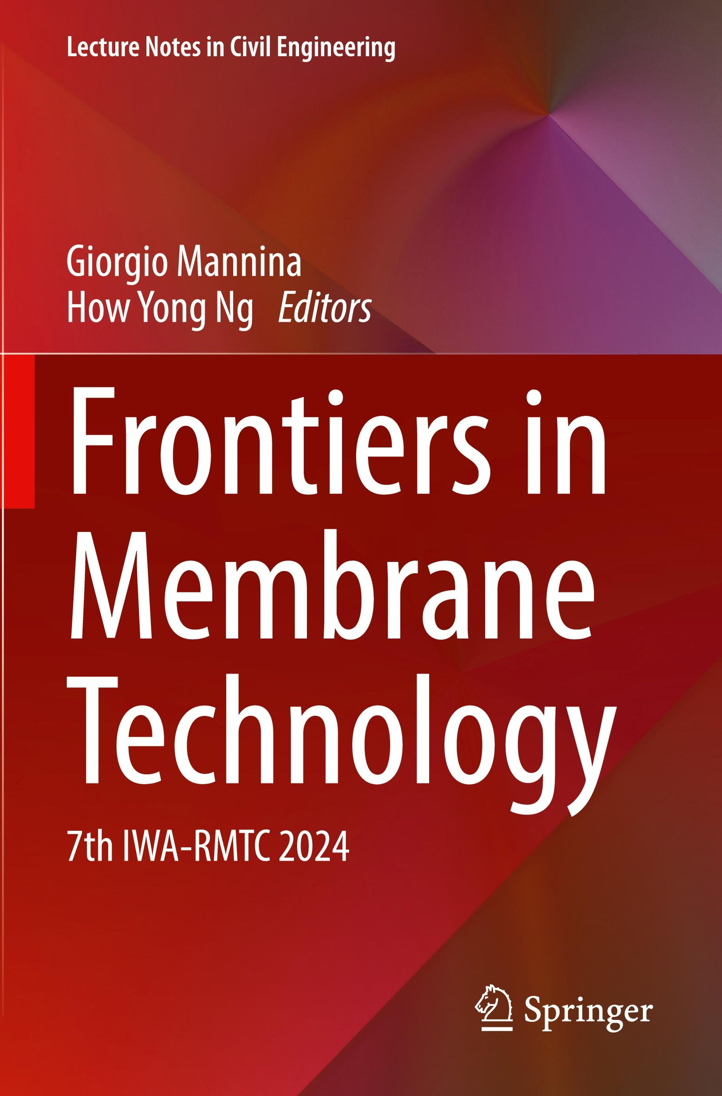 "Frontiers in Membrane Technology" 7th IWA-RMTC 2024. Rote und violette geometrische Formen im Hintergrund., Buch
