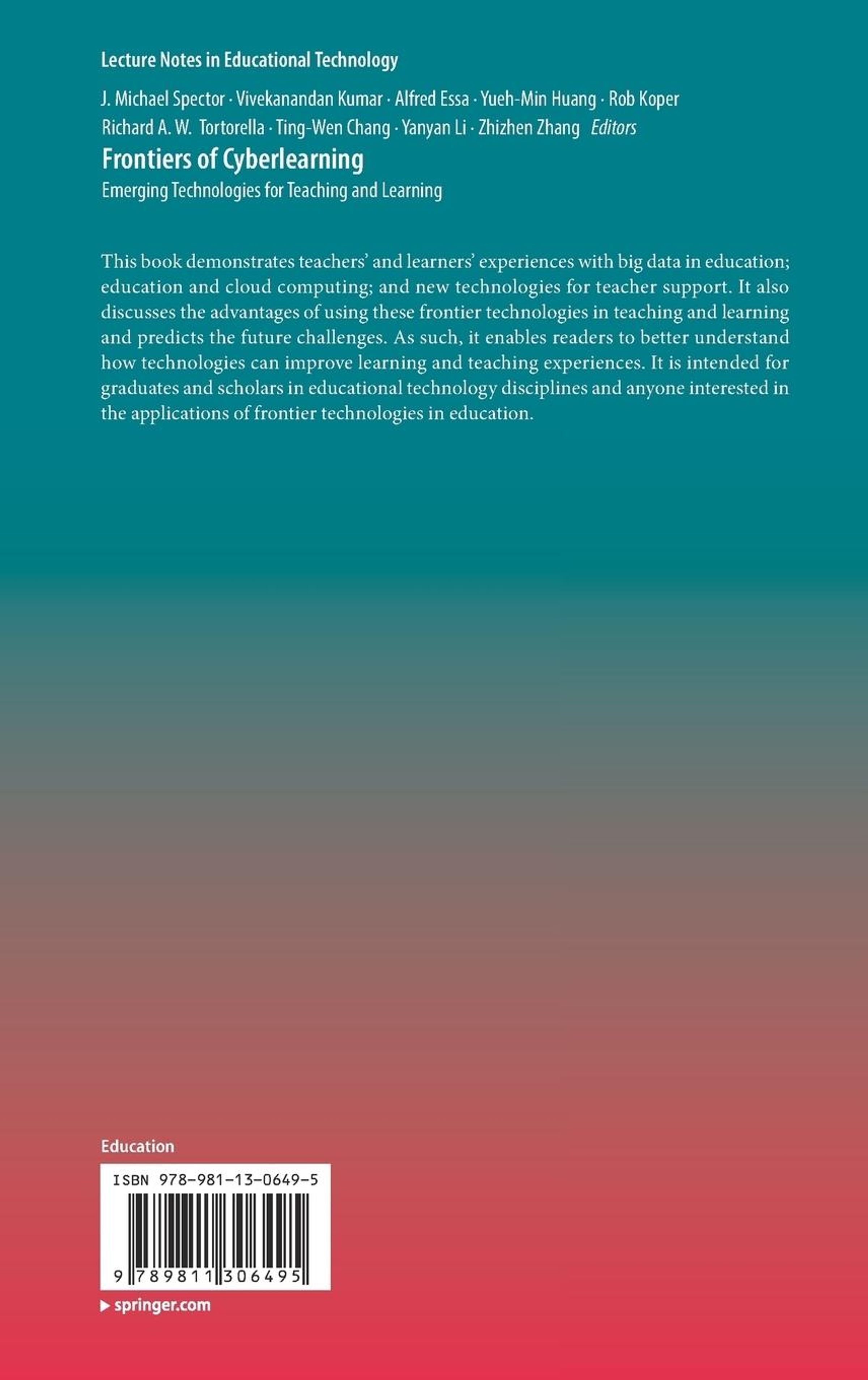This book demonstrates teachers¿ and learners¿ experiences with big data in education; education and cloud computing; and new technologies for teacher support. It also discusses the advantages of using these frontier technologies in teaching and learning and predicts the future challenges. As such, it enables readers to better understand how technologies can improve learning and teaching experiences. It is intended for graduates and scholars in educational technology disciplines and anyone interested in the applications of frontier technologies in education.
