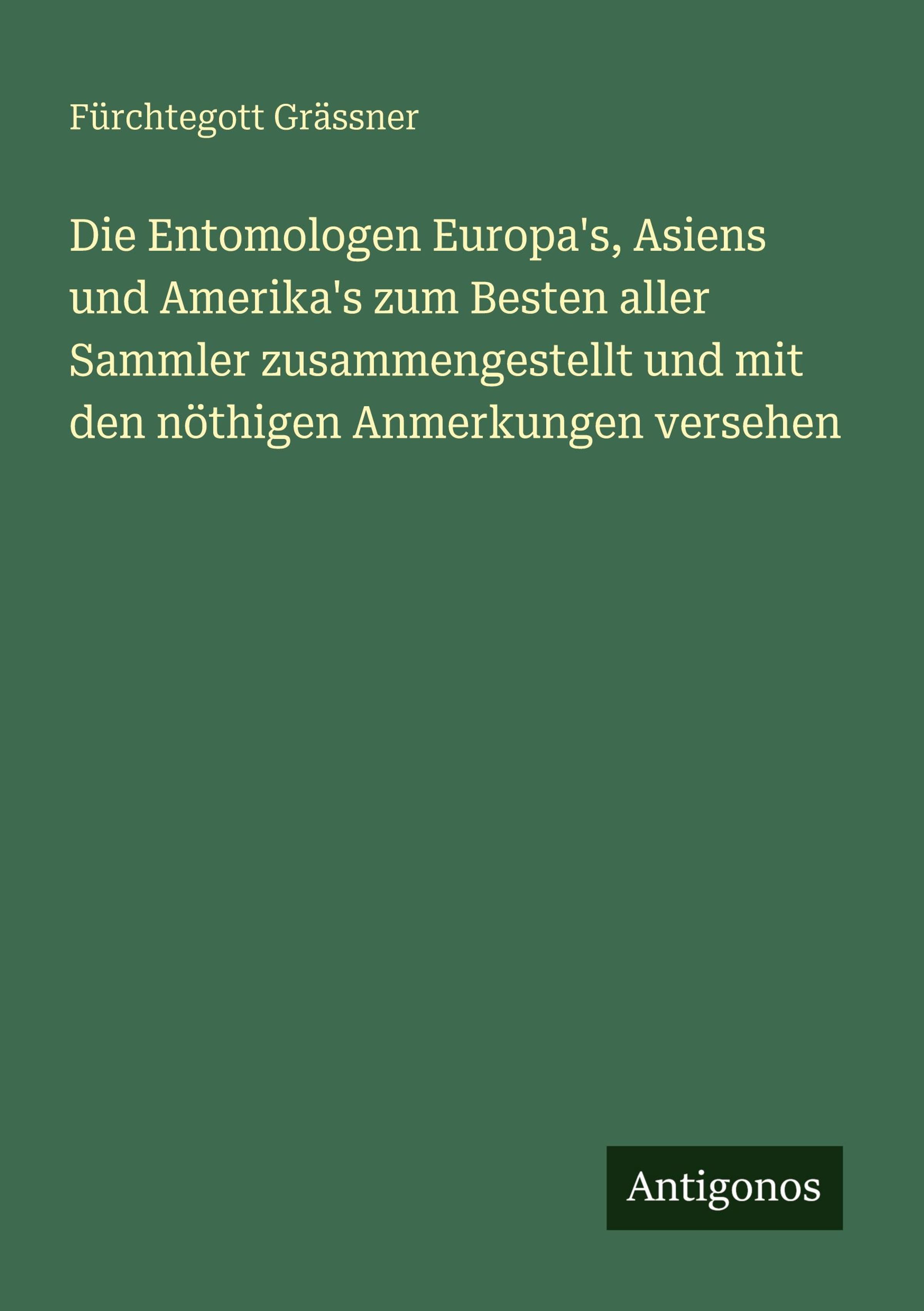 Fürchtegott Grässner: Die Entomologen Europa's, Asiens und Amerika's zum Besten aller Sammler zusammengestellt..., Kartoniert / Broschiert