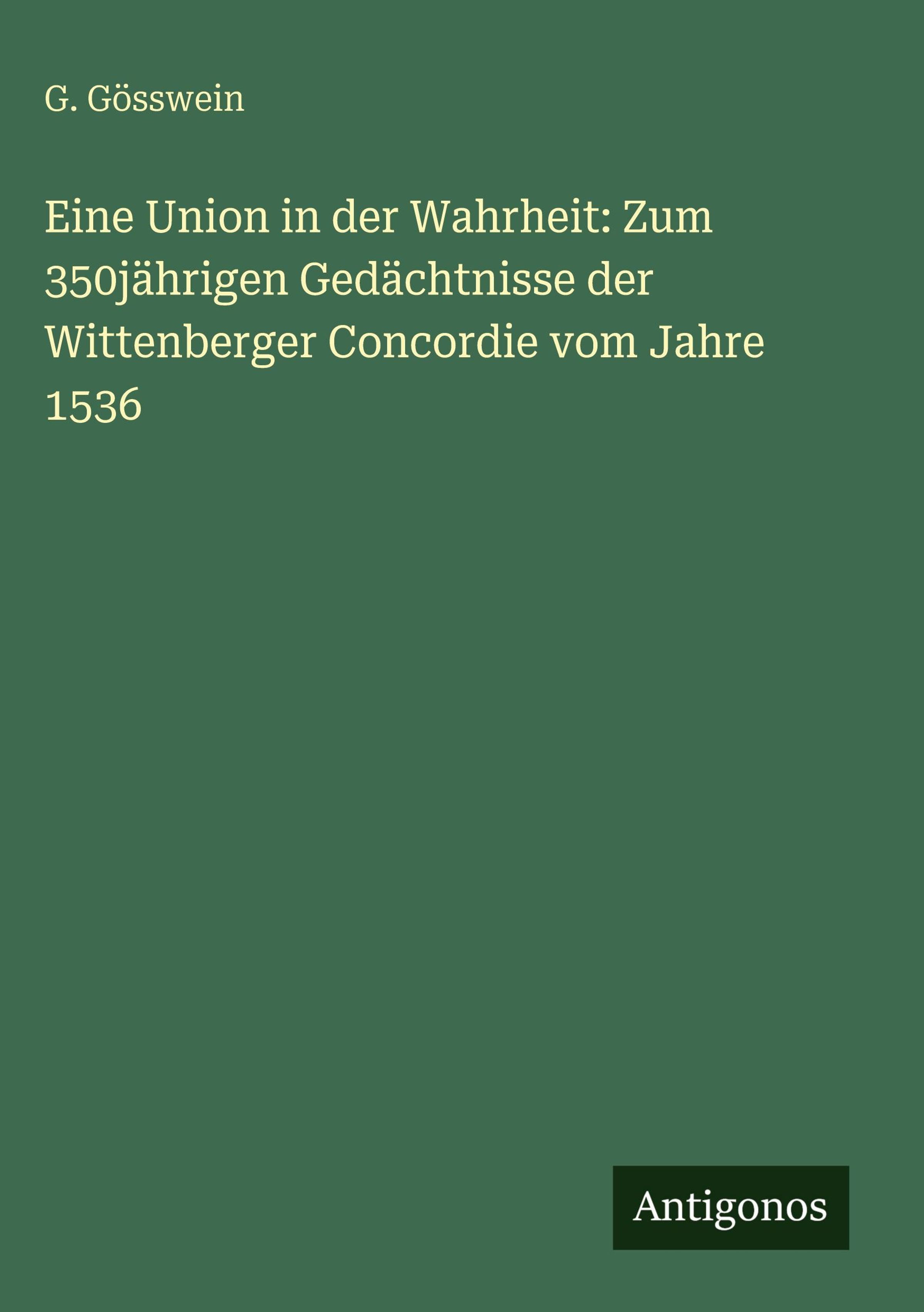 G. Gösswein: Eine Union in der Wahrheit: Zum 350jährigen Gedächtnisse der Wittenberger Concordie vom Jahre 1536, Gebunden