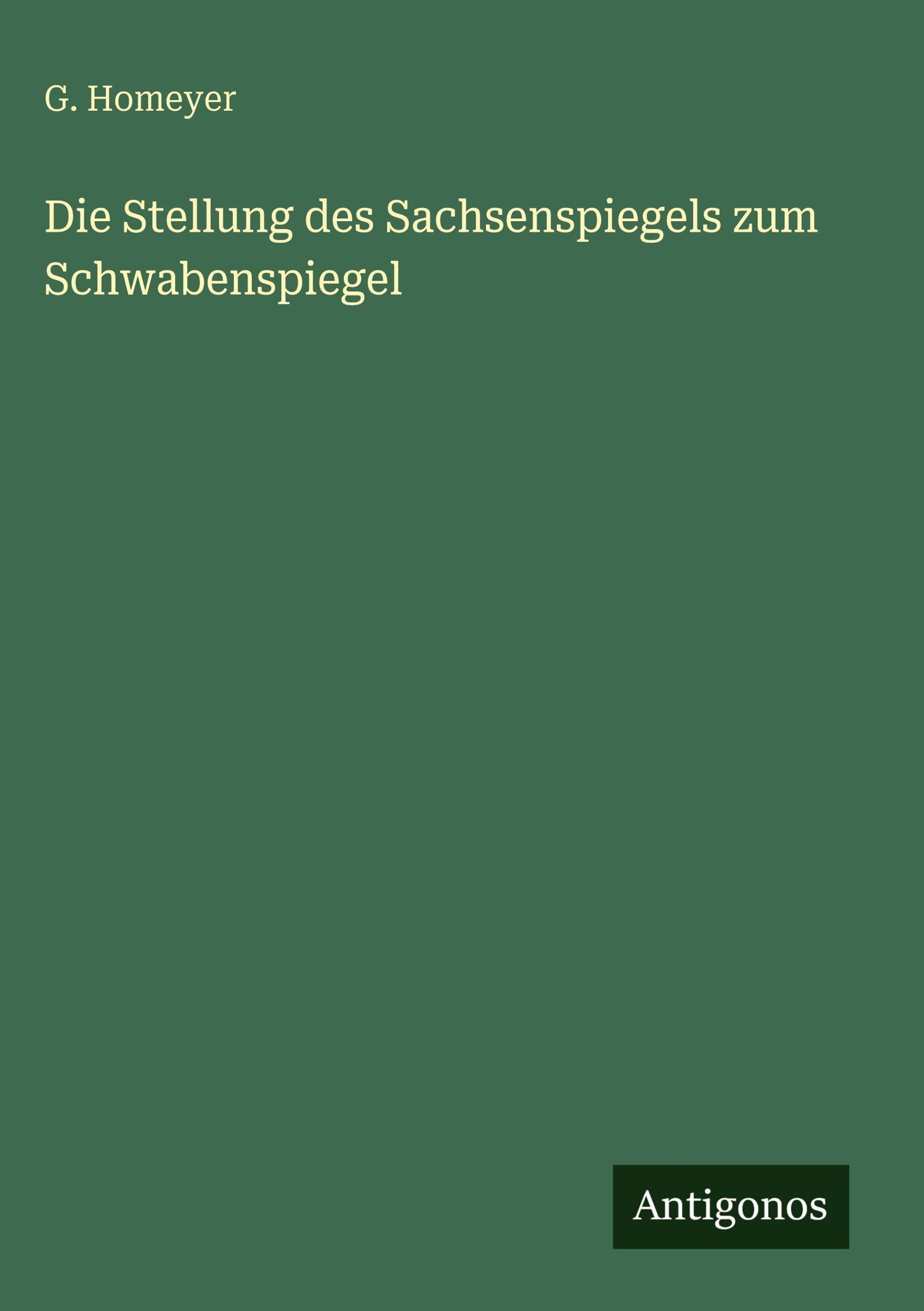 G. Homeyer: Die Stellung des Sachsenspiegels zum Schwabenspiegel, Gebunden