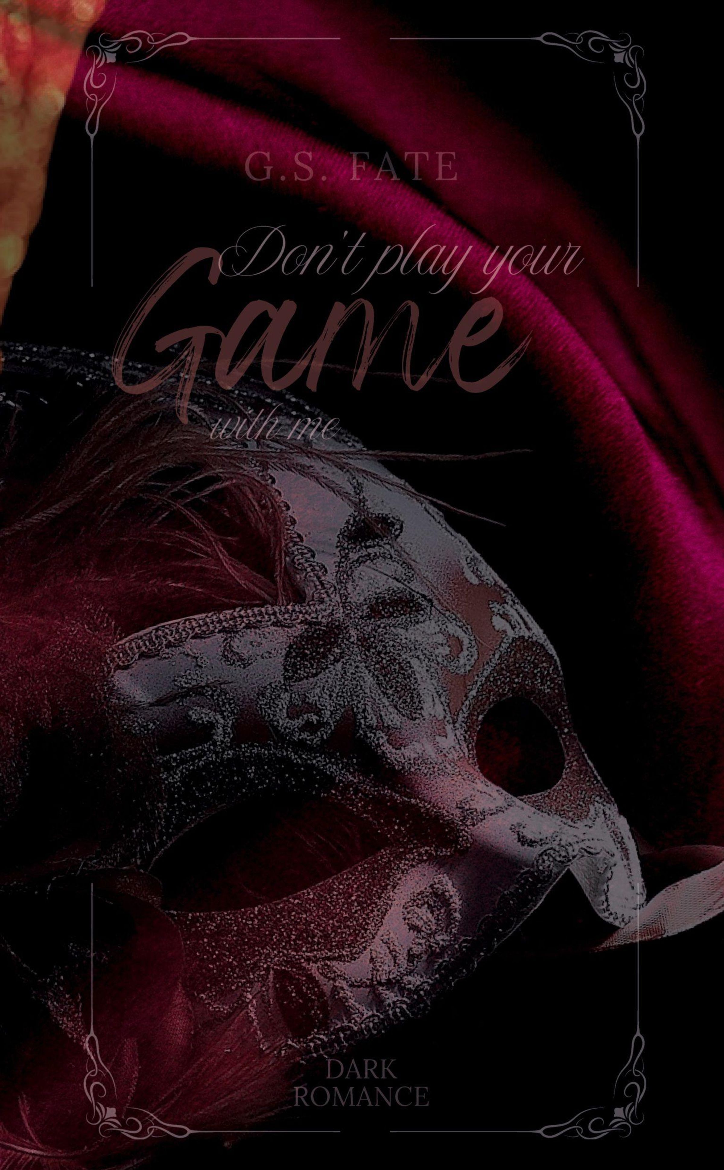 Text: "G.S. Fate. Don't play your game with me. Dark Romance." Eine reich verzierte Maske auf dunkelrotem Samt., Buch