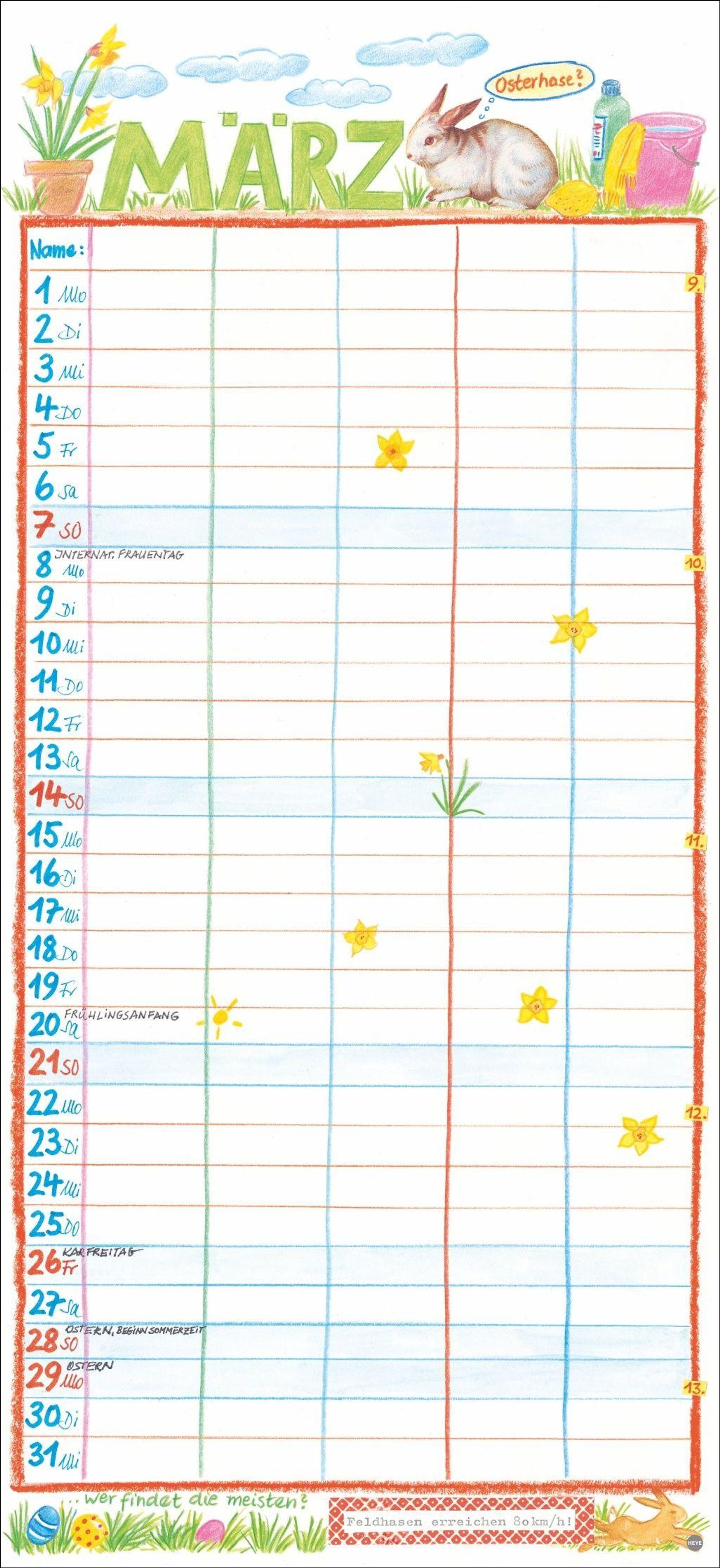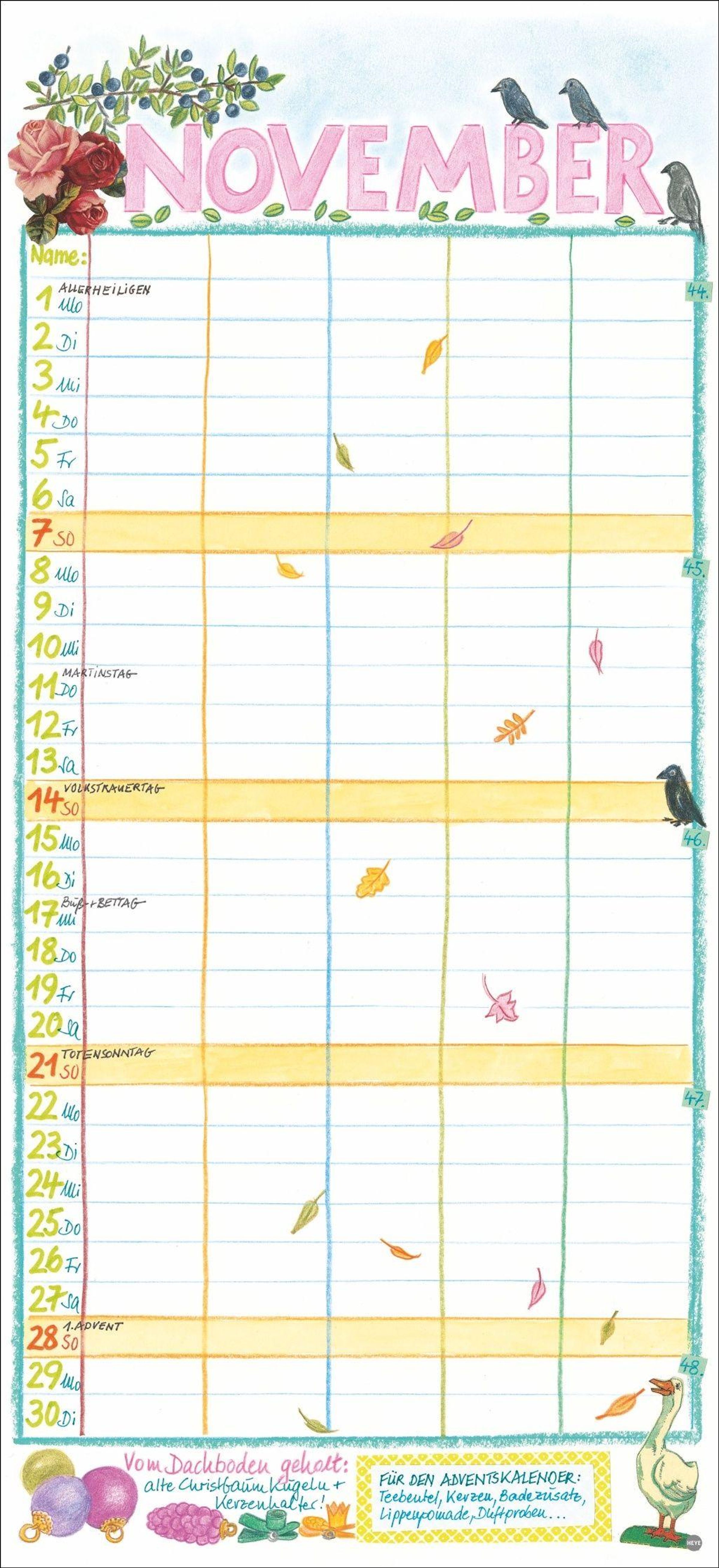 - Liebevoll illustrierter Kalender für Familien mit handschriftlichen Details. Wandkalender 2027 mit 5 Spalten.