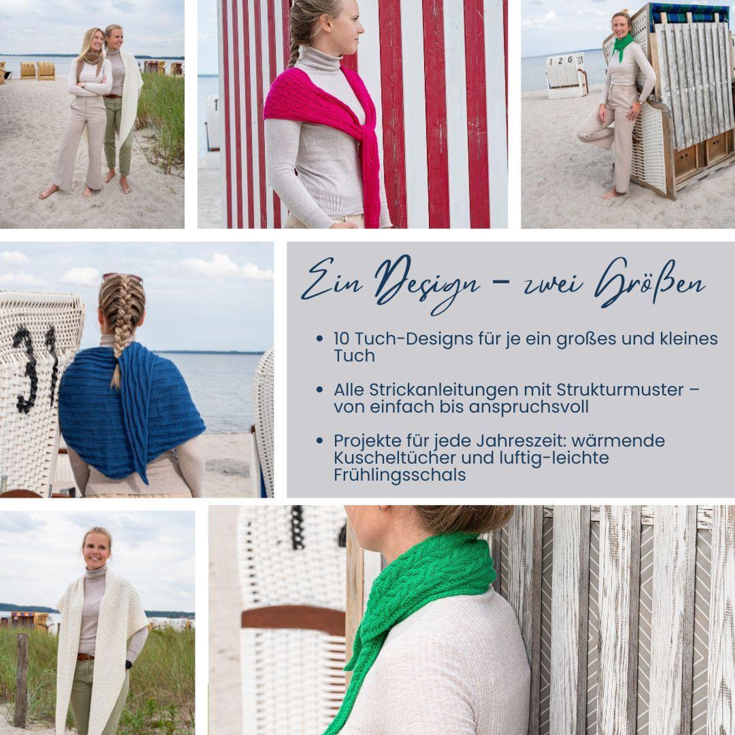 - Strickmuster inspiriert von Wellen, Wind und Meer - jedes Tuch in 2 Größen. Strickanleitungen fürs Strukturmuster stricken. Tücher und Mini Tücher stricken.