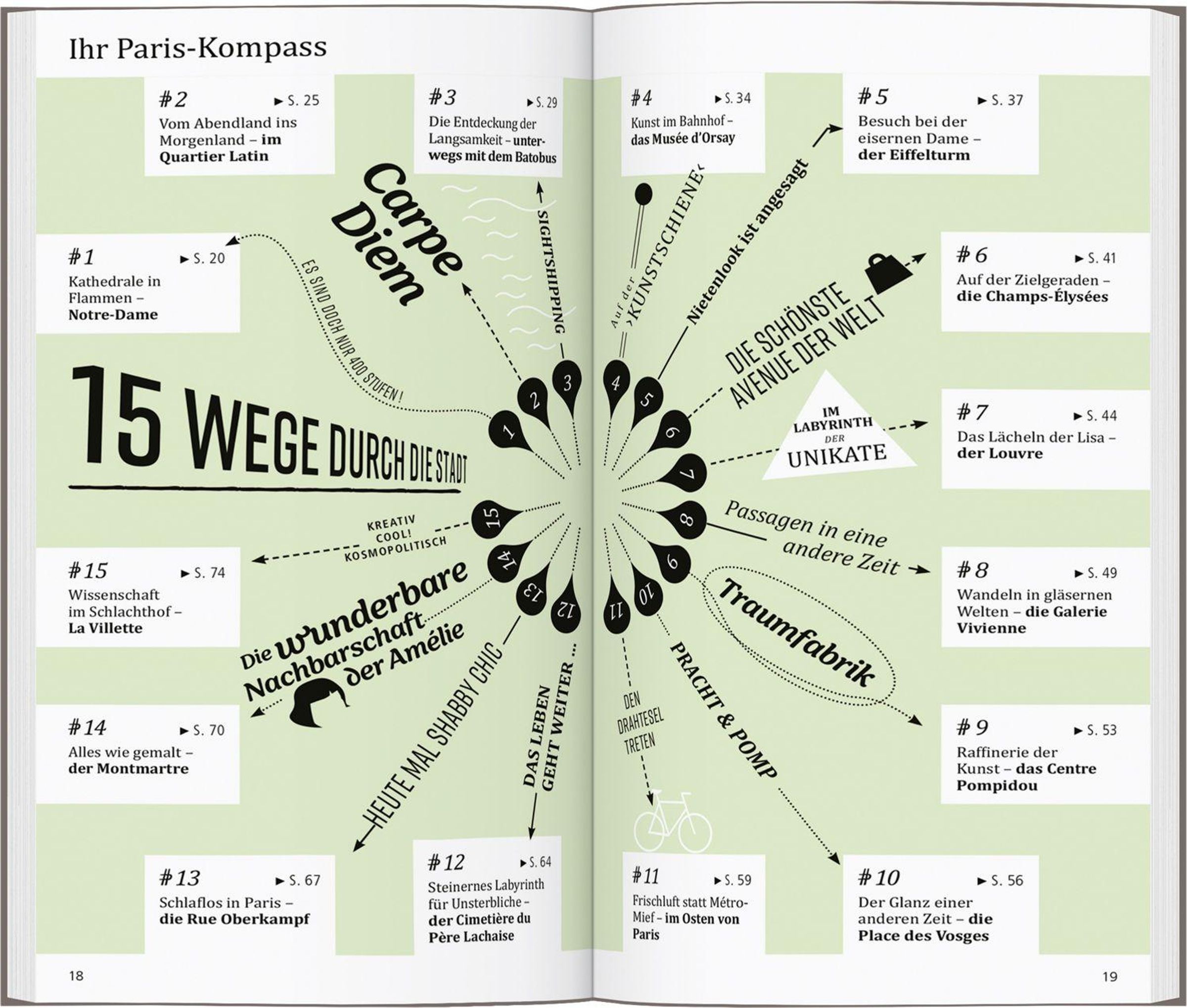 In eigenen Kapiteln erfahren Sie, wo es sich in fremden Betten gut schläft, wo Sie glücklich satt werden, wohin die Pariser zum Stöbern und Entdecken gehen und wohin es sie zieht, wenn die Nacht beginnt.