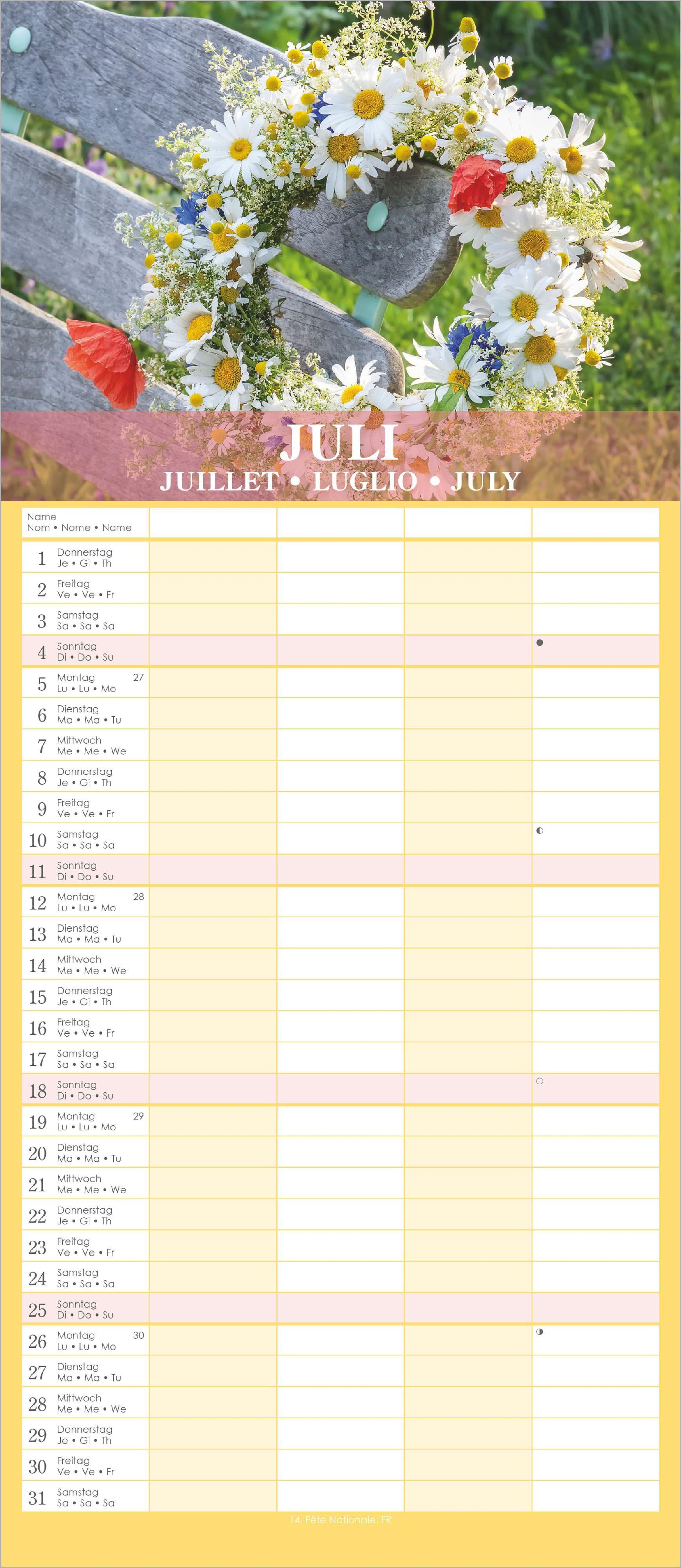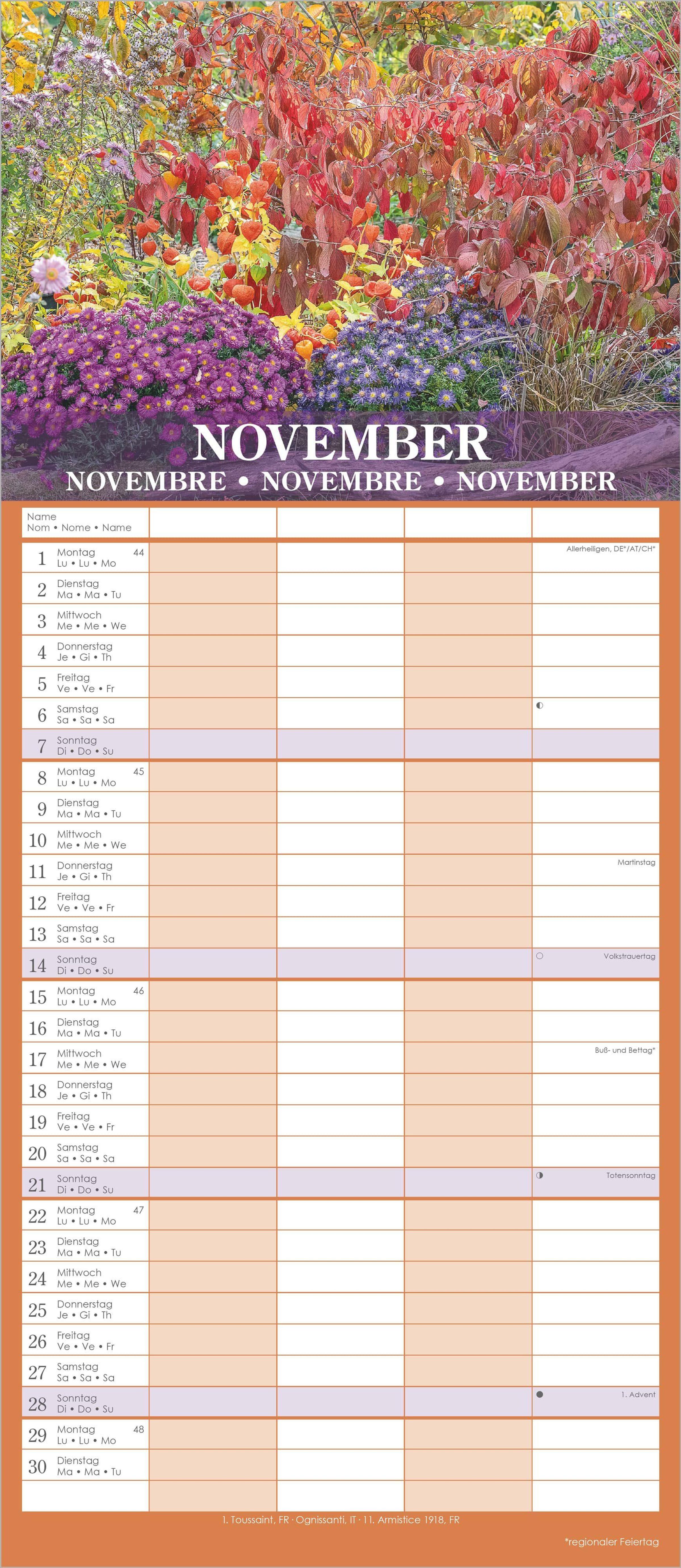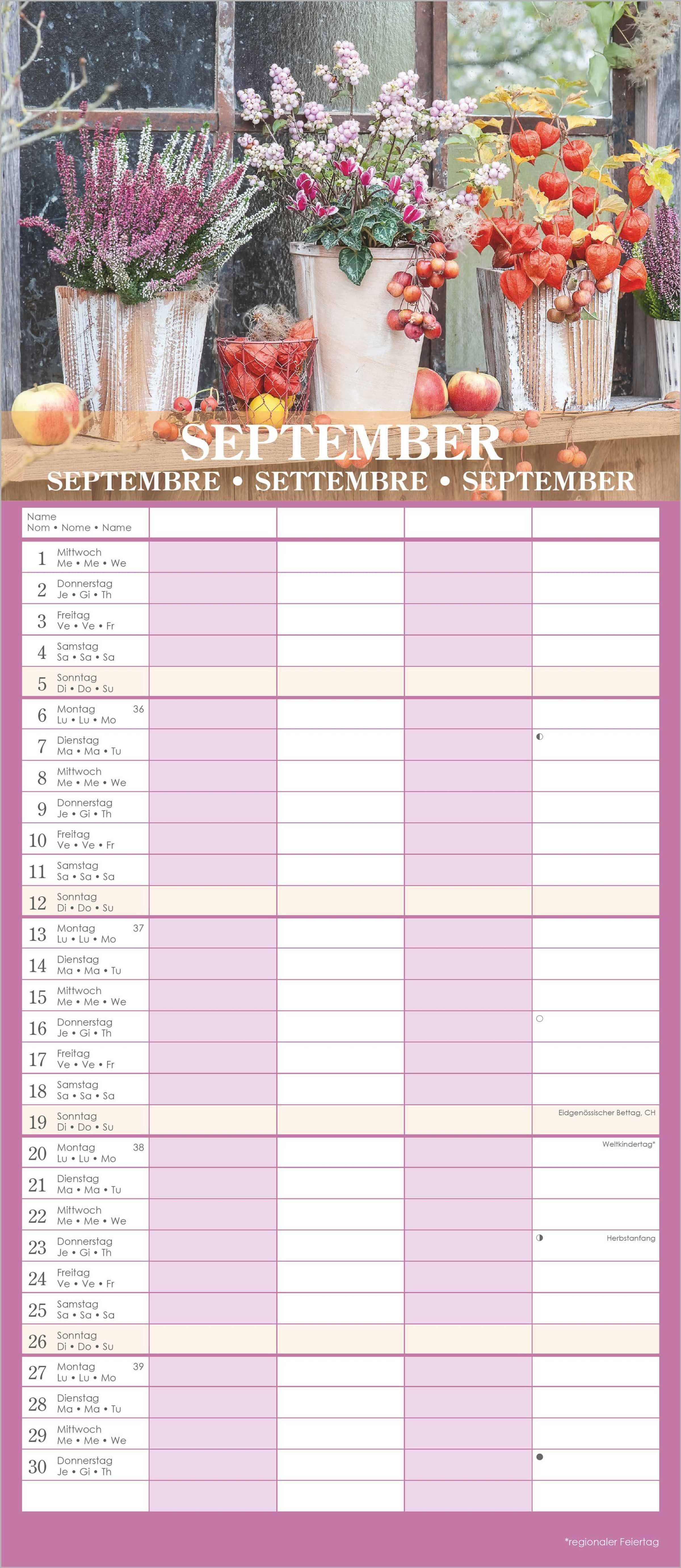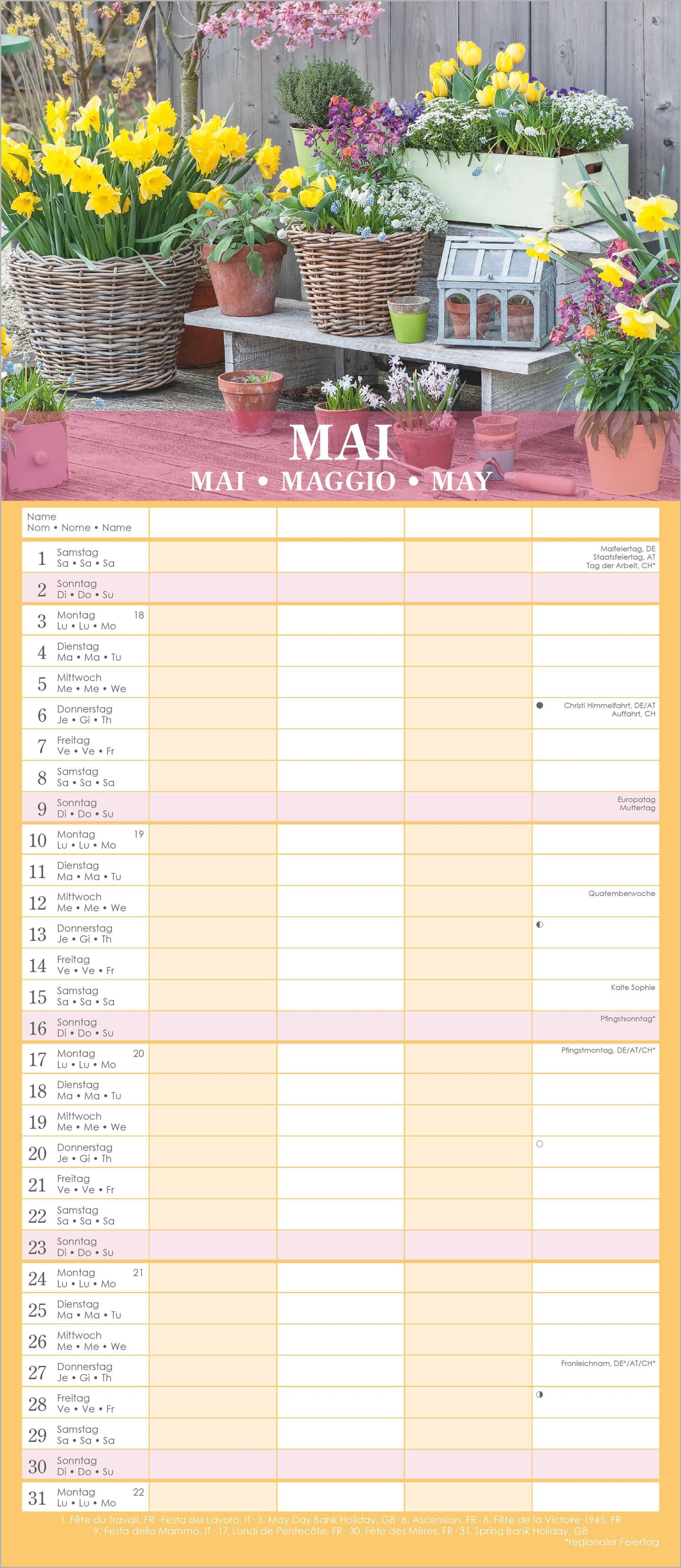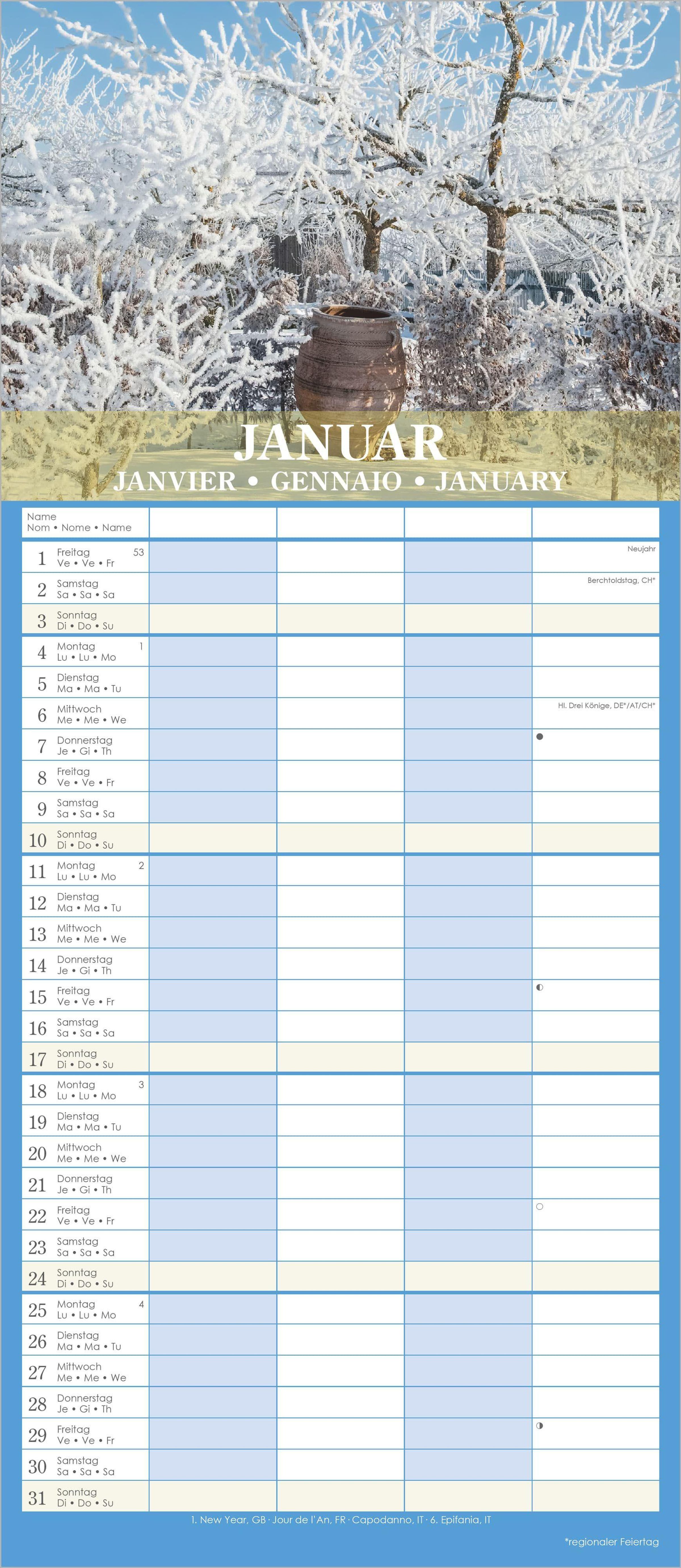 Mehrsprachiges Kalendarium: 4-sprachig (DE/FR/IT/GB) mit Feiertagen für DE/AT/CH