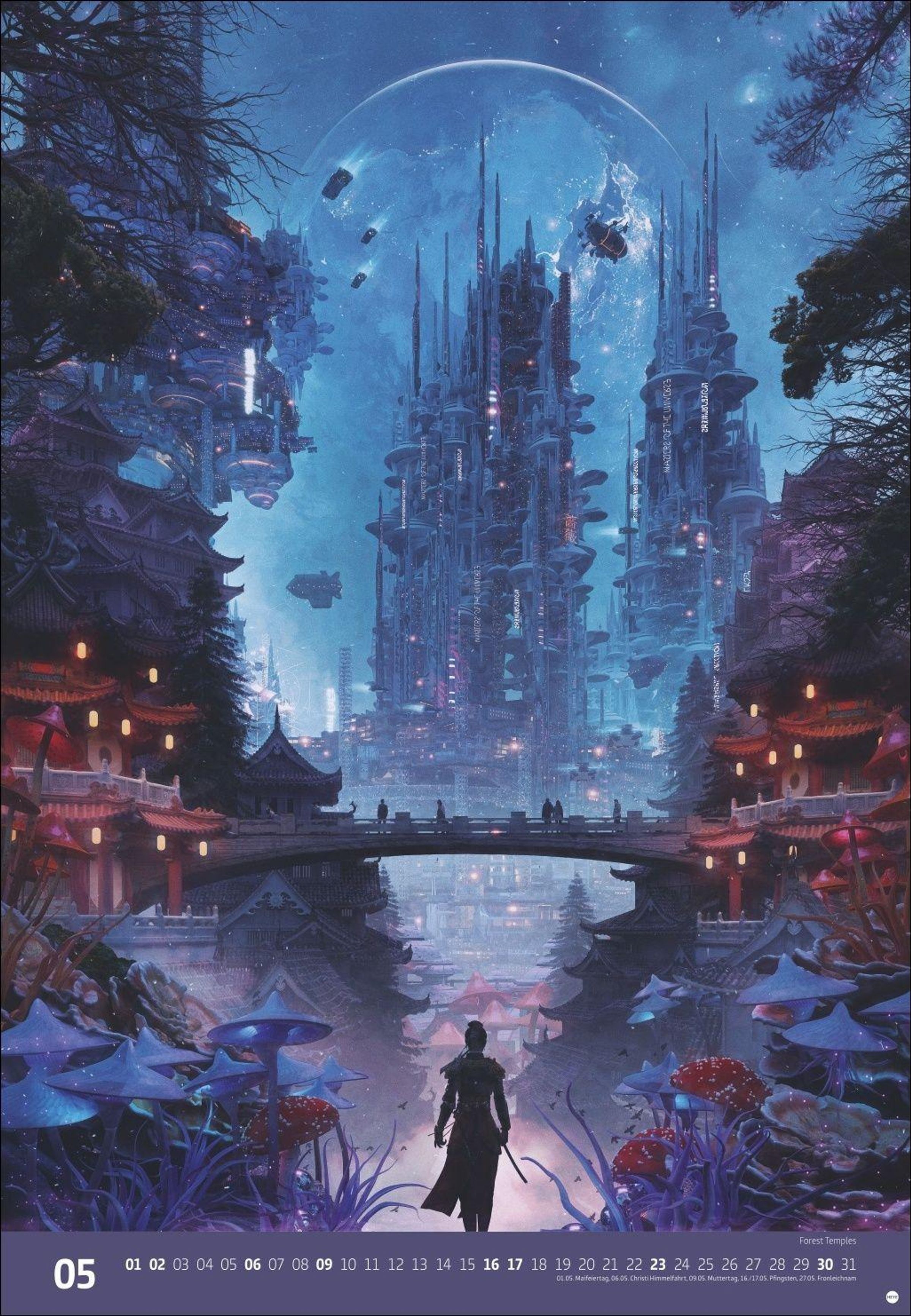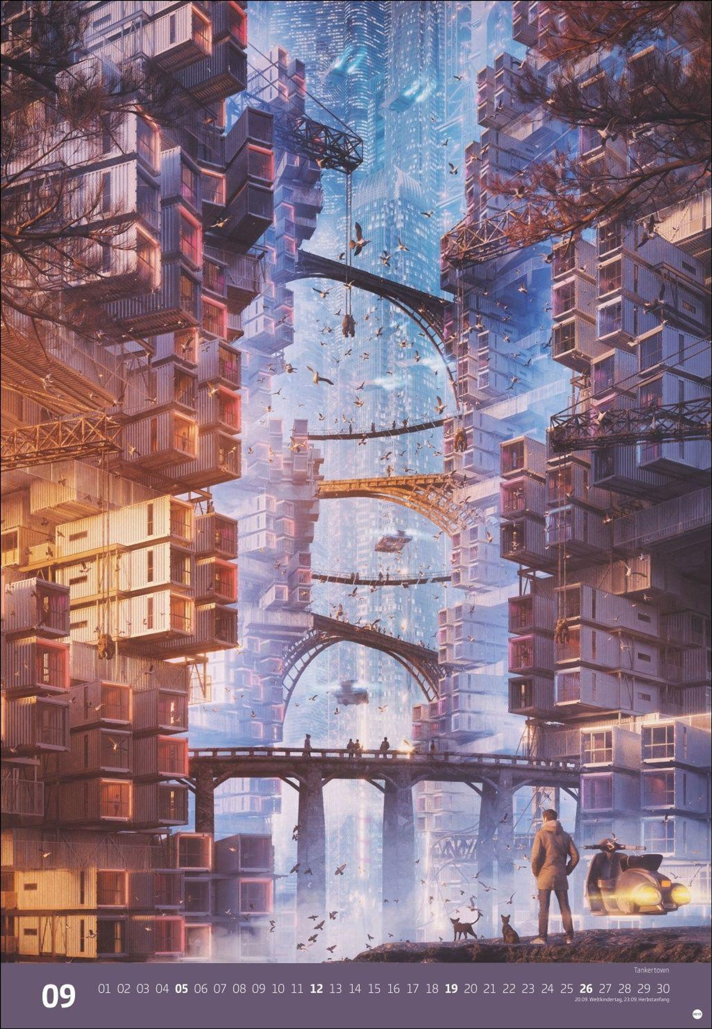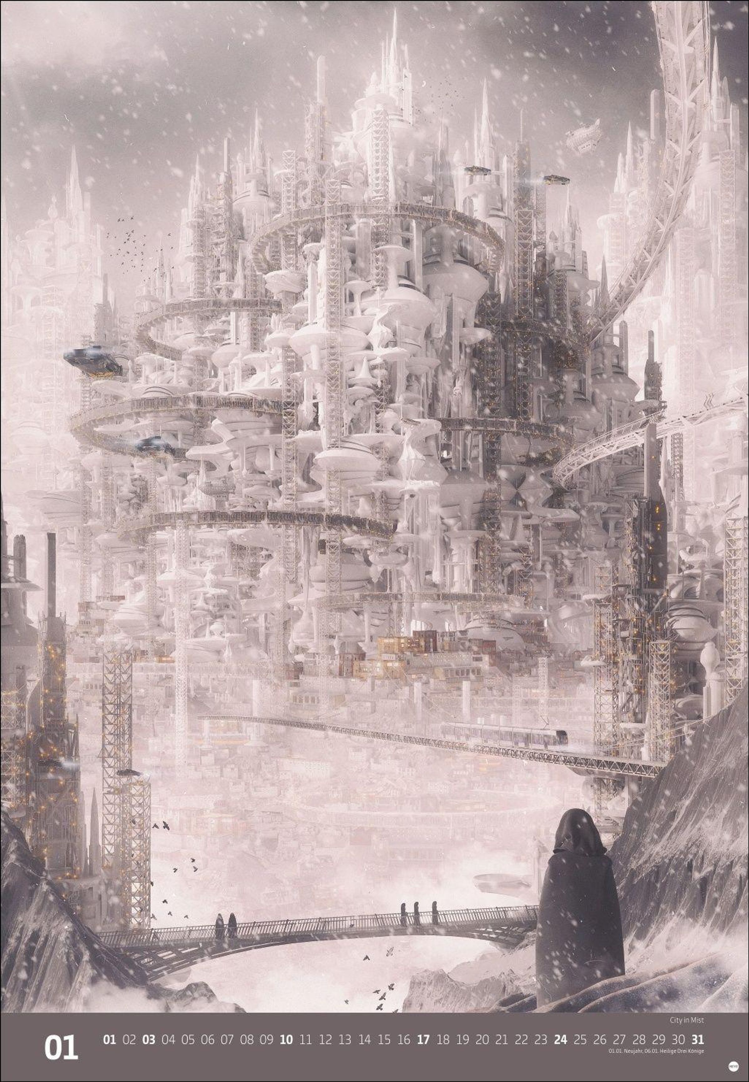 • Sci-Fi meets Fantasy: futuristische Städtelandschaften. Großer Wandkalender im Format 37 x 53,5 cm