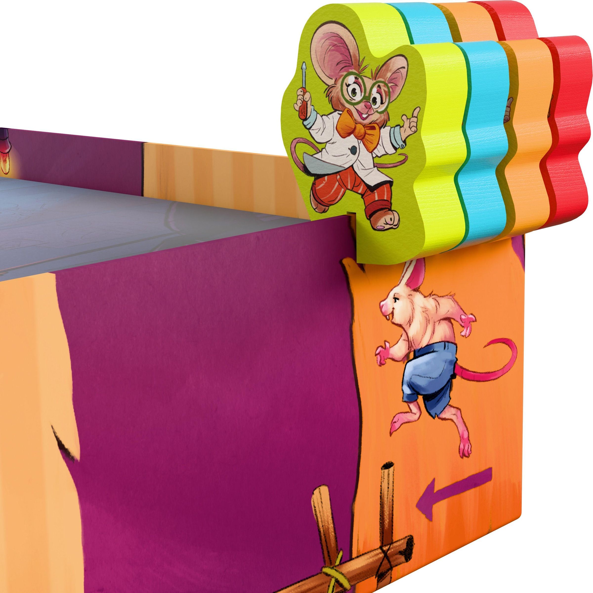 Willkommen in Mr. Crazy's Erfinderwerkstatt! Hier tüfteln der verrückte Professor und sein Mäuse-Team an außergewöhnlichen Erfindungen herum - aktuell am Crazy Copter, einem einzigartigen Flugmobil! Doch sie brauchen dringend Unterstützung. Wer mit genauem Blick und gutem Gedächtnis die Puzzleteile geschickt anlegt und seine Maus am weitesten vorzieht, gewinnt.