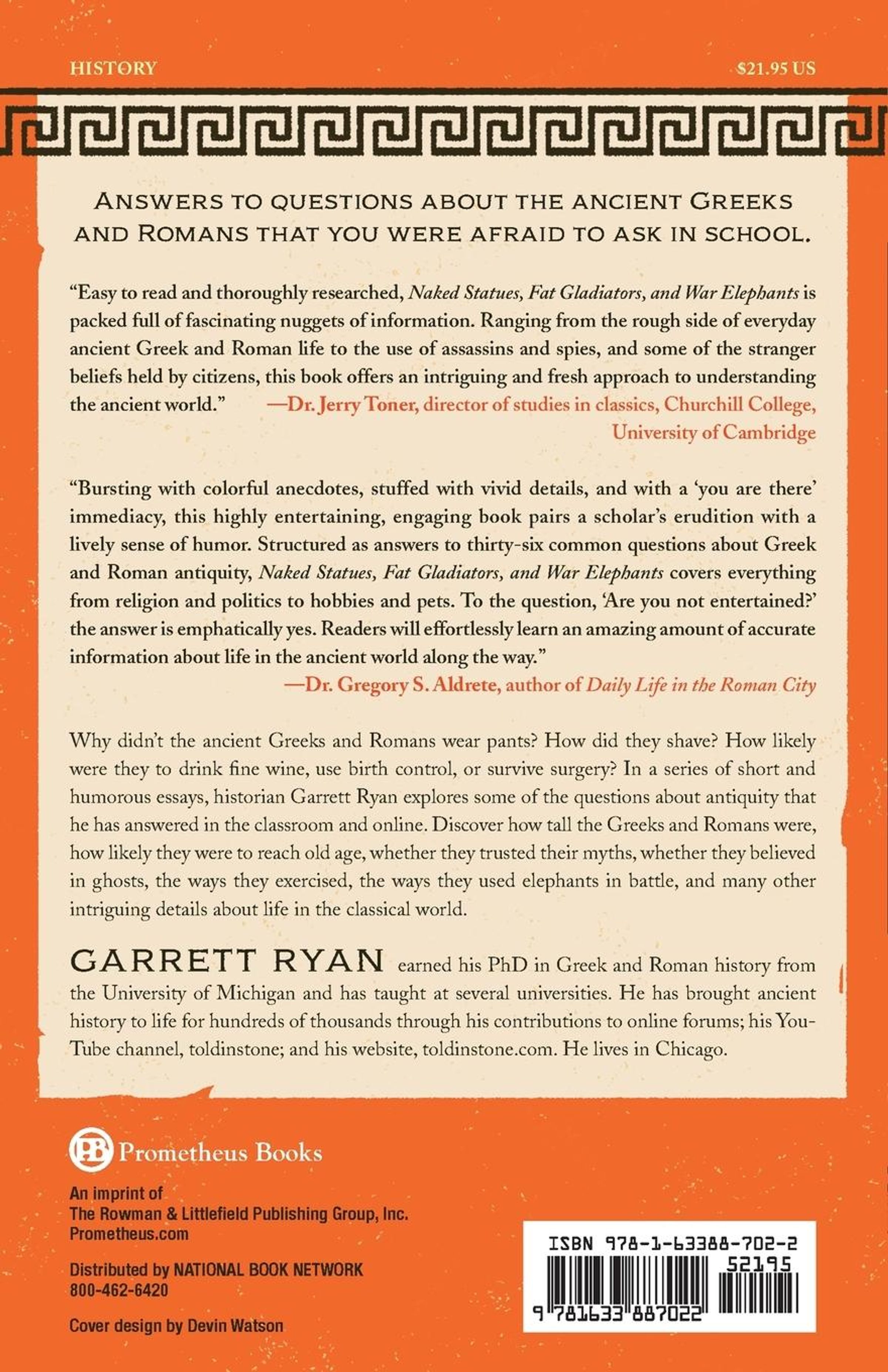 Most books on the Roman and Greek Empires deal with famous figures or events, but Naked Statues, Fat Gladiators, and War Elephants focuses on things that seldom appear in history books: myths and magic, barbers and birth control, fine wine and the daily grind. This book, based on questions Roman historian Garrett Ryan, PhD gets most often on Quora and the popular Reddit forum, AskHistorians, reveals the nitty gritty details on how Romans and Greeks lived in a series of short and engaging essays, organized into six categories: Daily Life, Society, Beliefs, Sports and Leisure, and Legacies