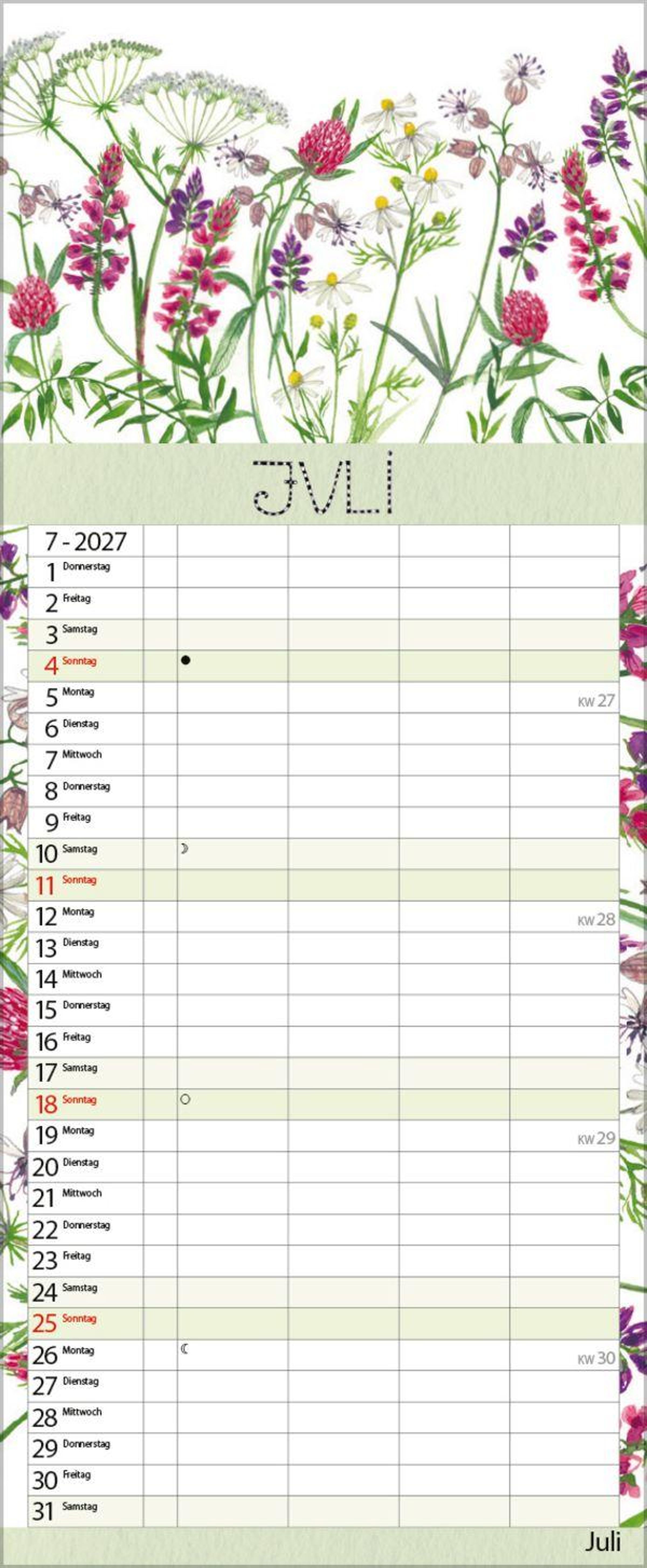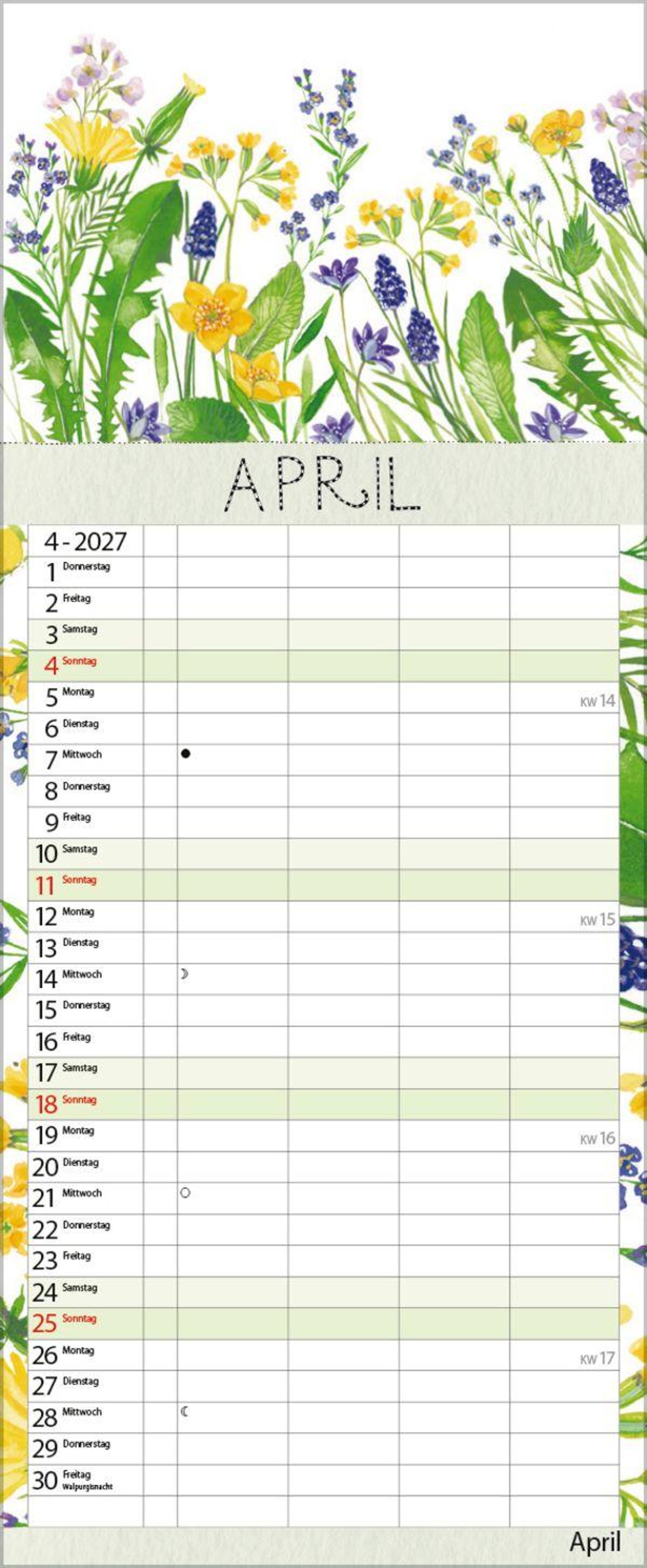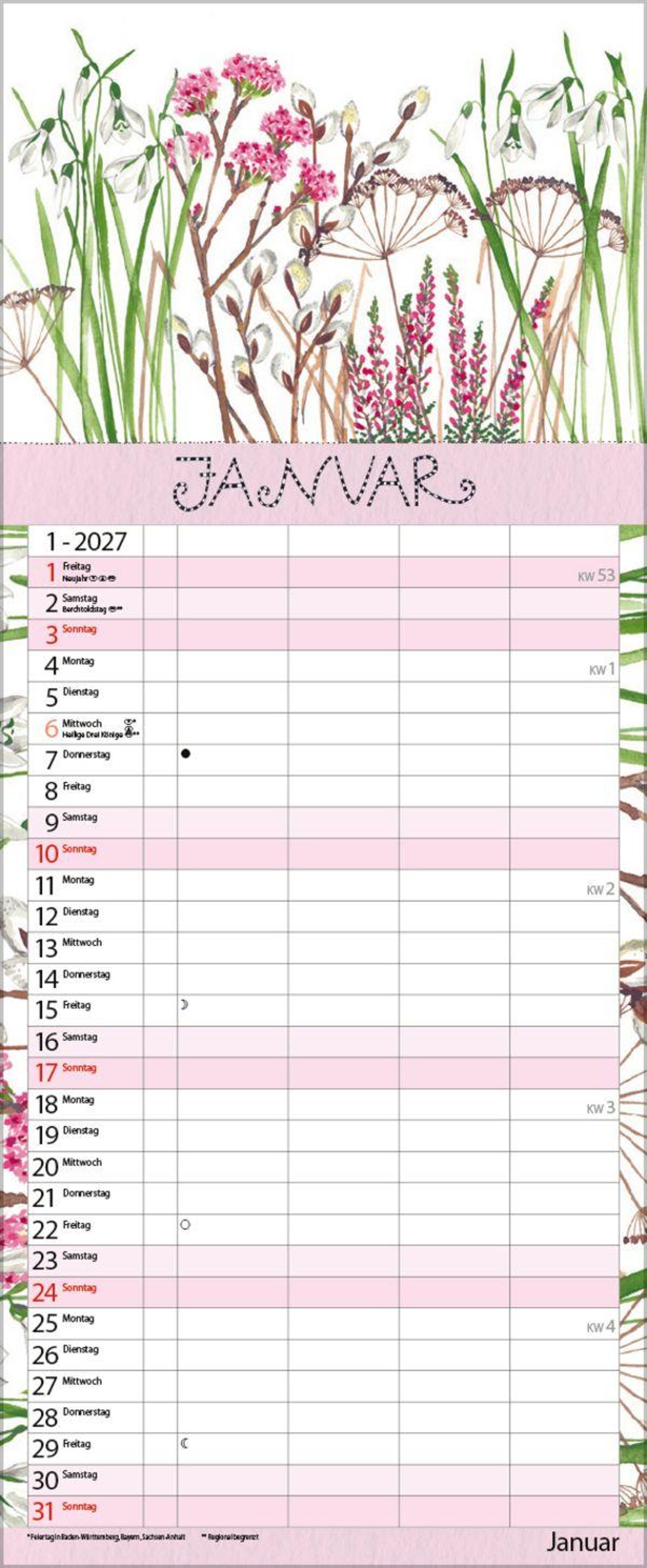 - Familienplaner - 4 große Spalten mit viel Platz. Hochwertiger Familienkalender für Gartenliebhaber mit Ferienterminen und Vorschau bis März 2027. 19 x 46 cm.