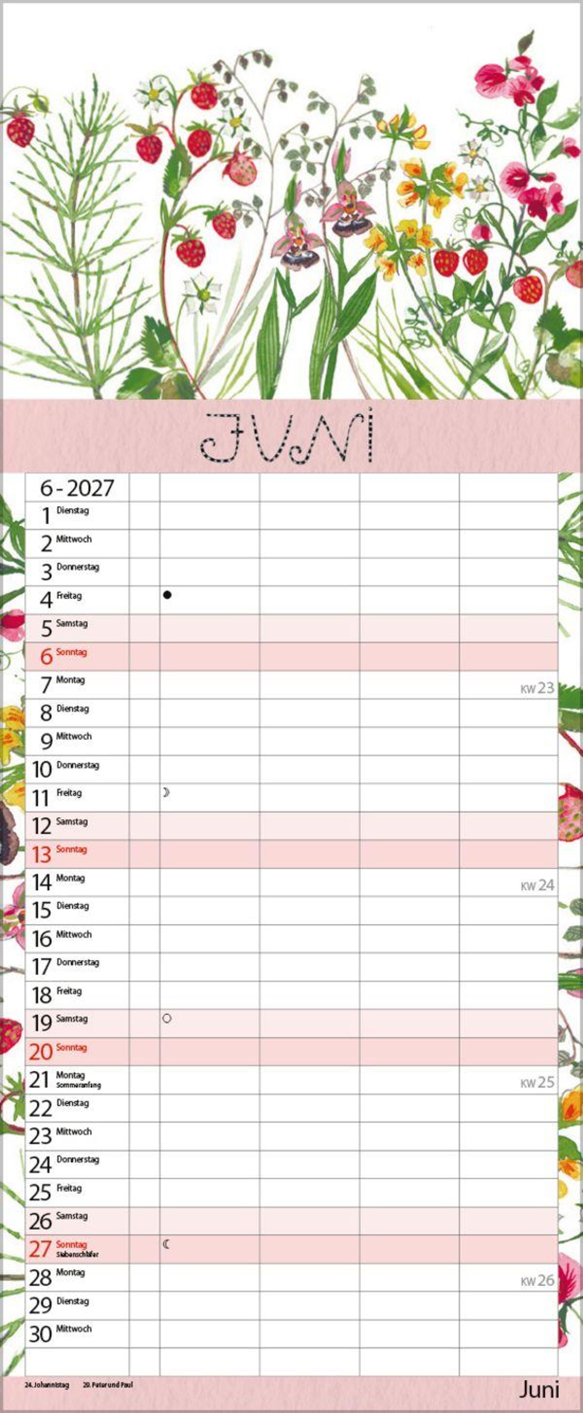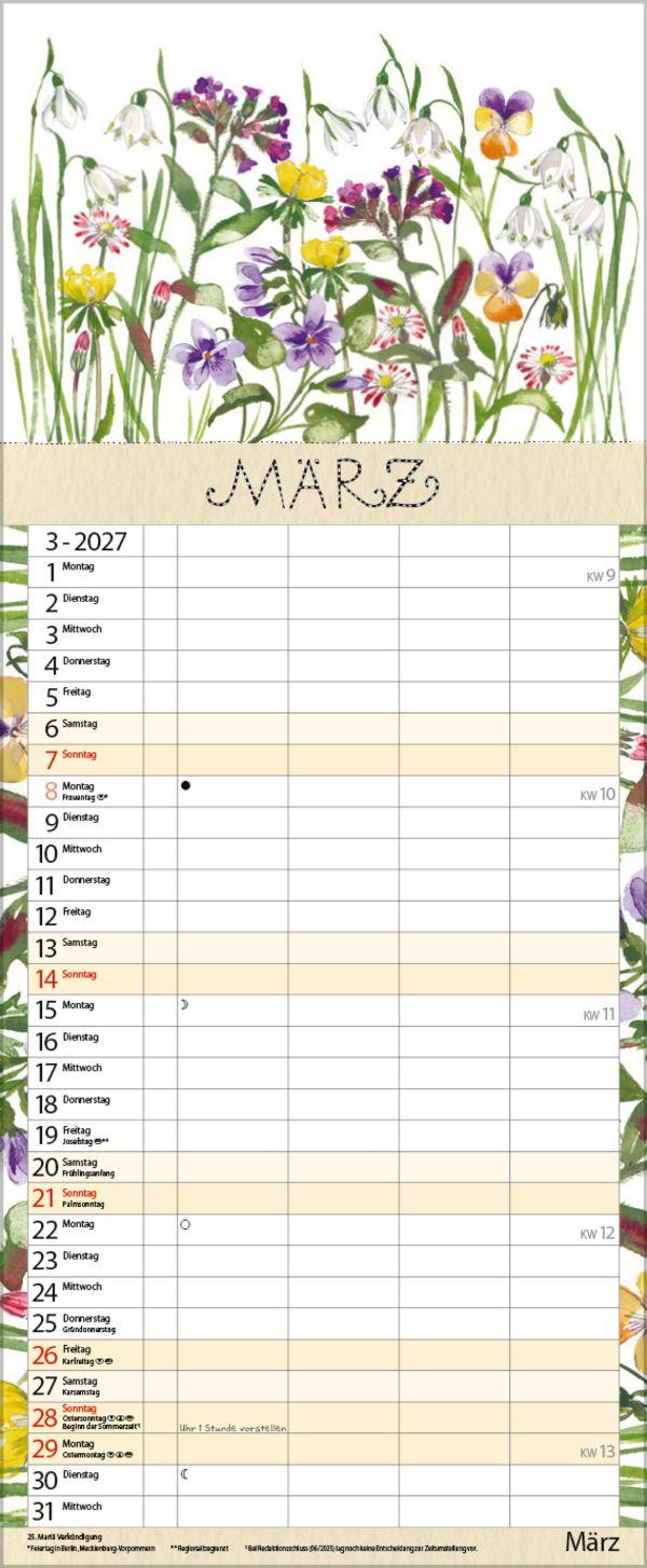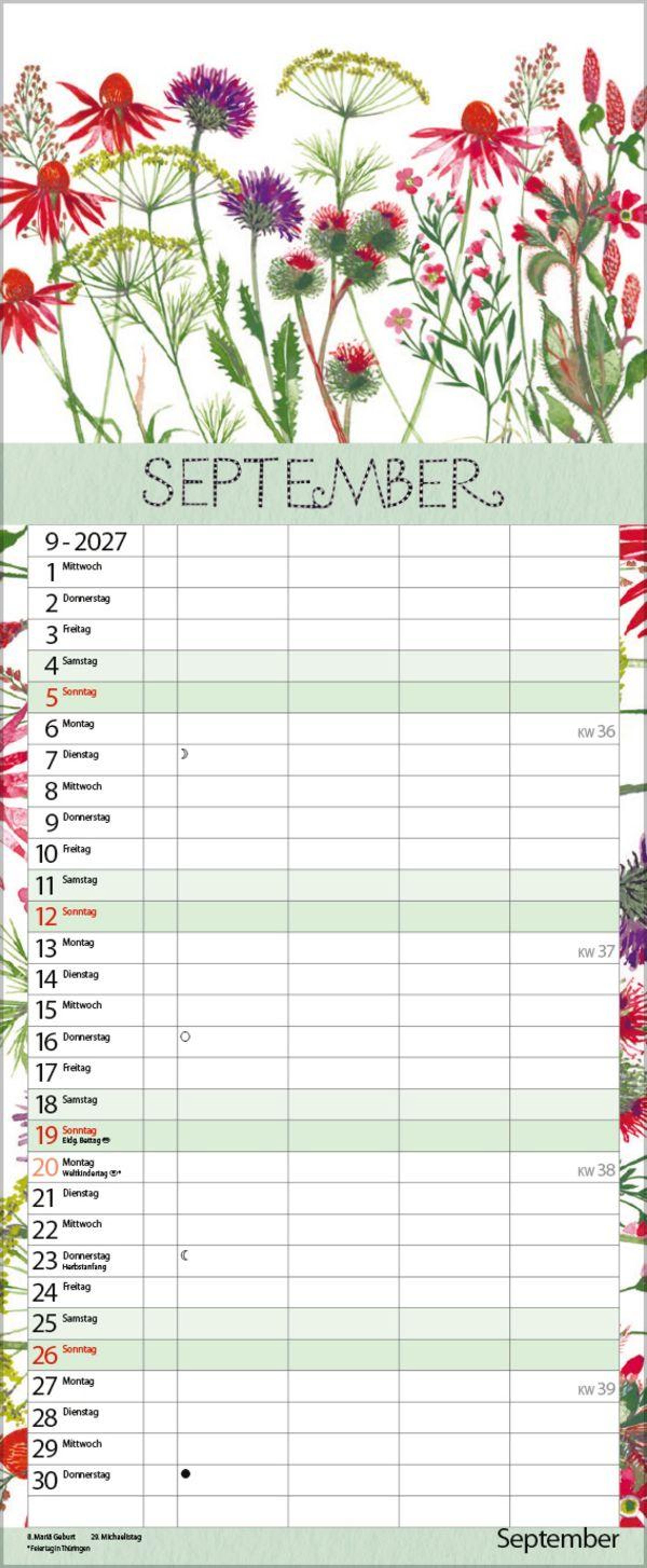 - Familienplaner - 4 große Spalten mit viel Platz. Hochwertiger Familienkalender für Gartenliebhaber mit Ferienterminen und Vorschau bis März 2027. 19 x 46 cm.