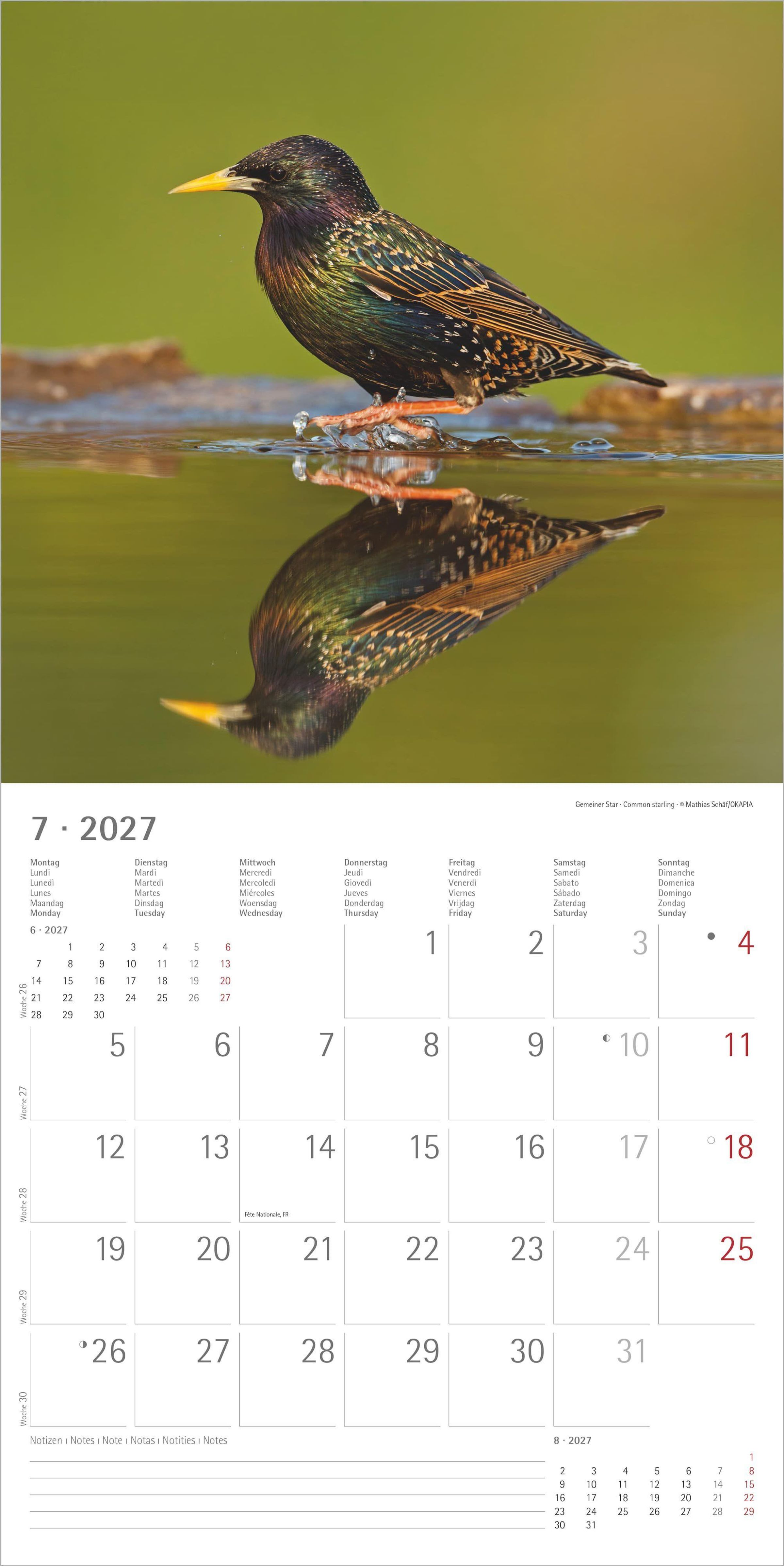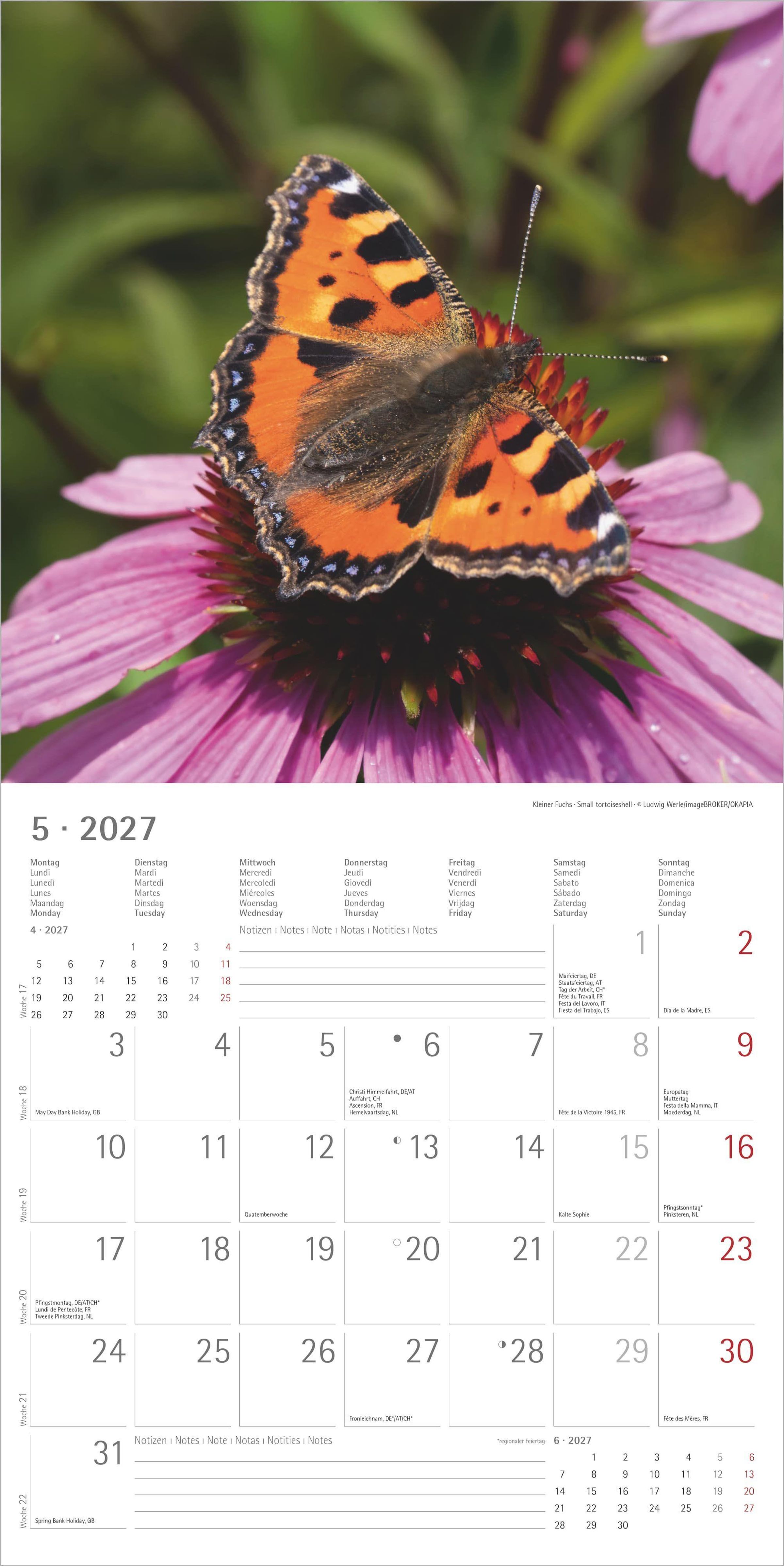 Dank des großzügigen Formats von 30 x 30 cm (aufgeklappt 30 x 60 cm) kommen die detailreichen Fotografien perfekt zur Geltung. Das übersichtliche, 6-sprachige Kalendarium bietet viel Platz für persönliche Notizen, enthält Feiertage für zahlreiche Länder sowie Ferientermine für Deutschland, Österreich und die Schweiz. Zusätzlich sorgt eine Monatsübersicht des Vor- und Folgemonats auf jeder Seite für optimale Planung.