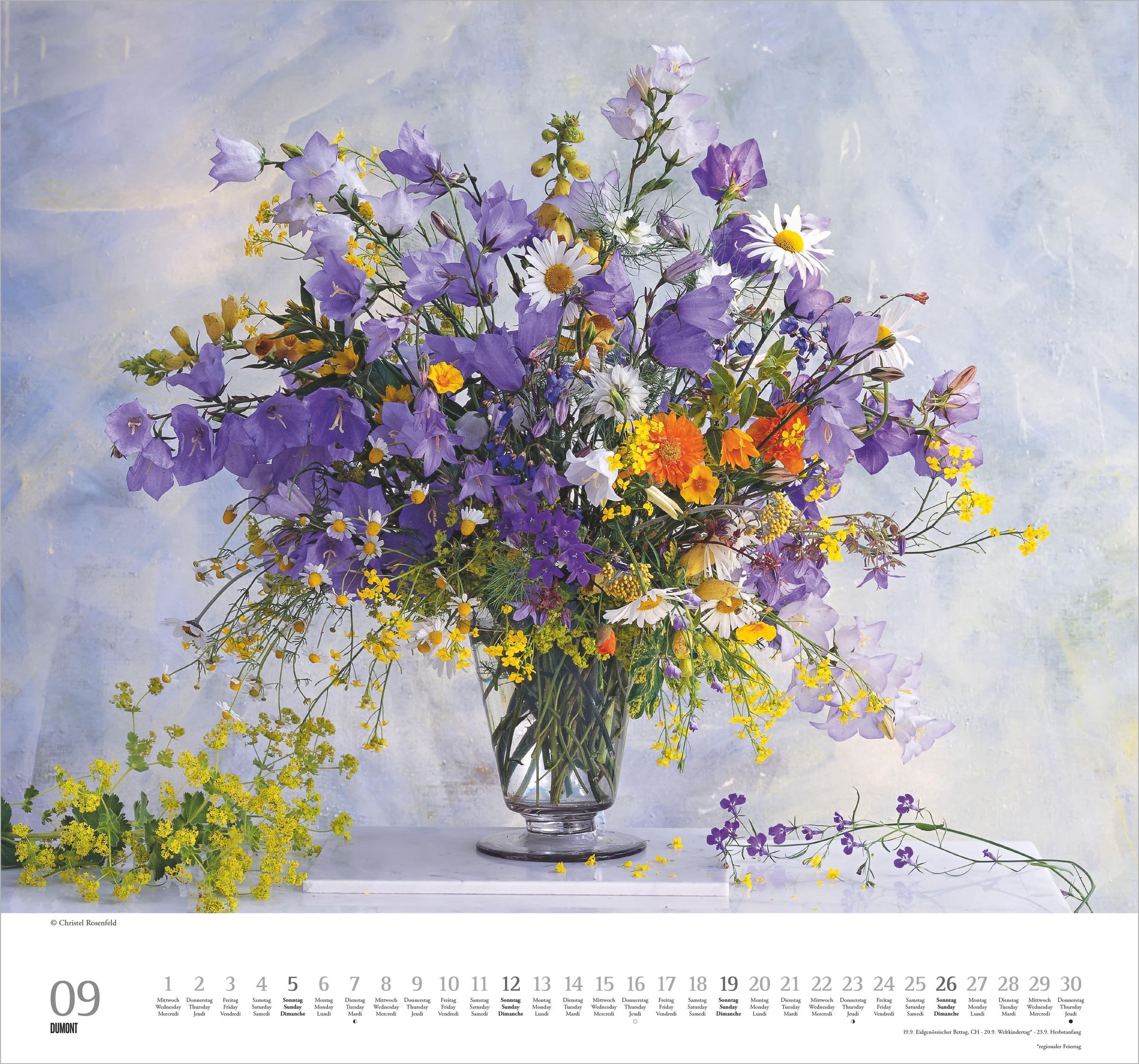 Ein edler Blumen-Kalender, der jeden Monat mit neuen floralen Kompositionen bezaubert -- ein stilvolles Geschenk und dekorativer Wandschmuck für alle Blumenliebhaber.