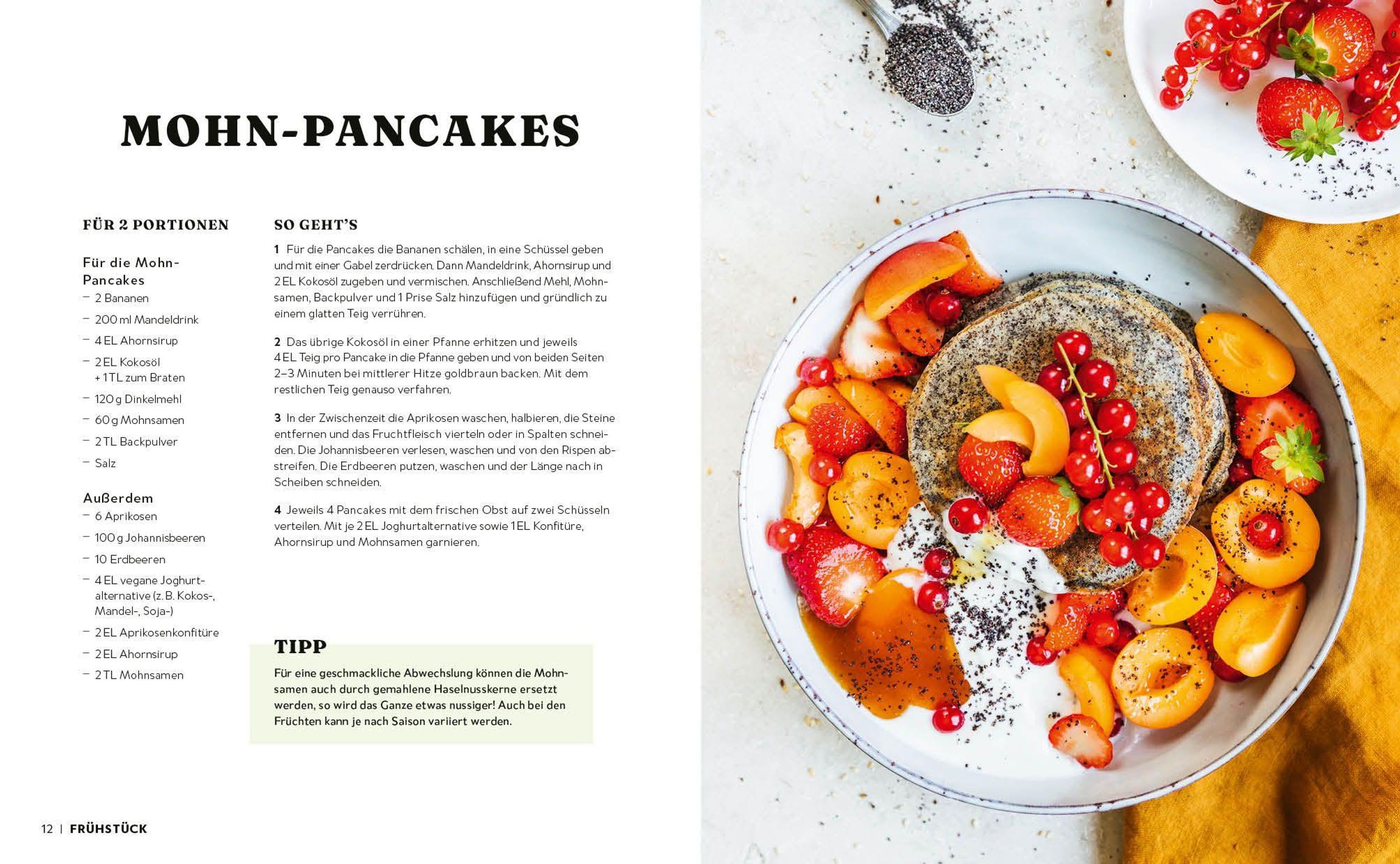 Mohn-Pancakes, Paprika-Fajitas, Couscous-Gemüsepfanne, fruchtigerSommer-Salat, schnelles Tiramisu - die vegane Küche ist bunt und aromatisch. Hier ist für jede*n Genießer*in was dabei!