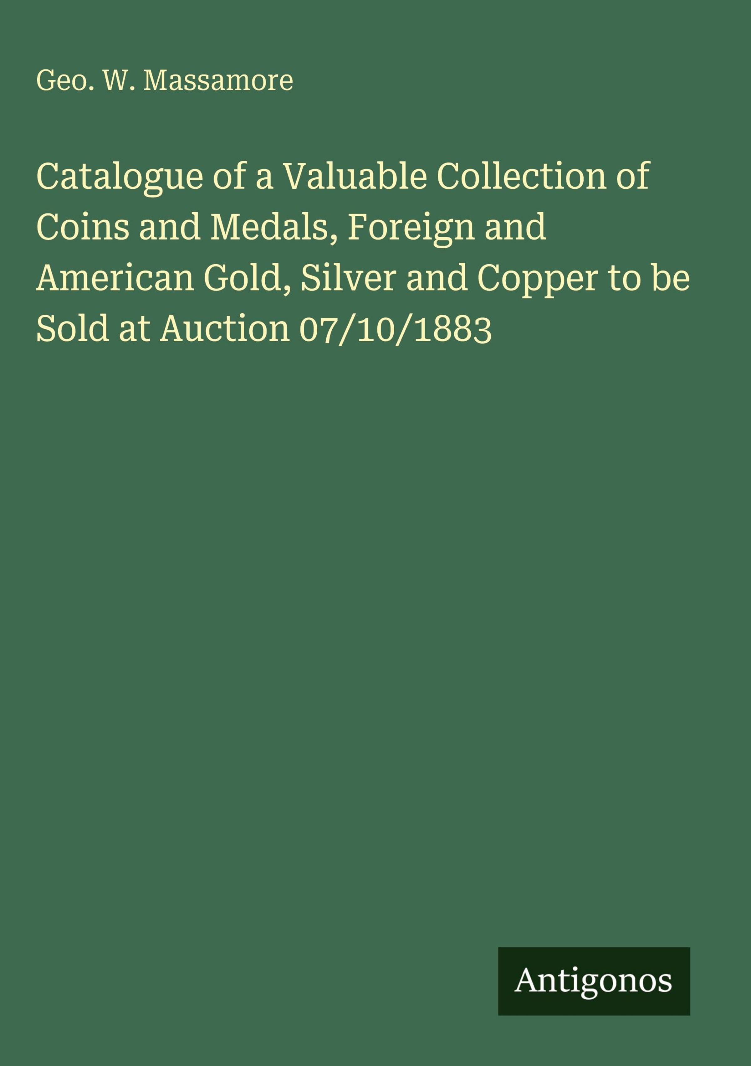 Geo. W. MassamoreCatalogue of a Valuable Collection of Coins and Medals, Gold, Silver and CopperBuchAktueller Preis: EUR 11,90
