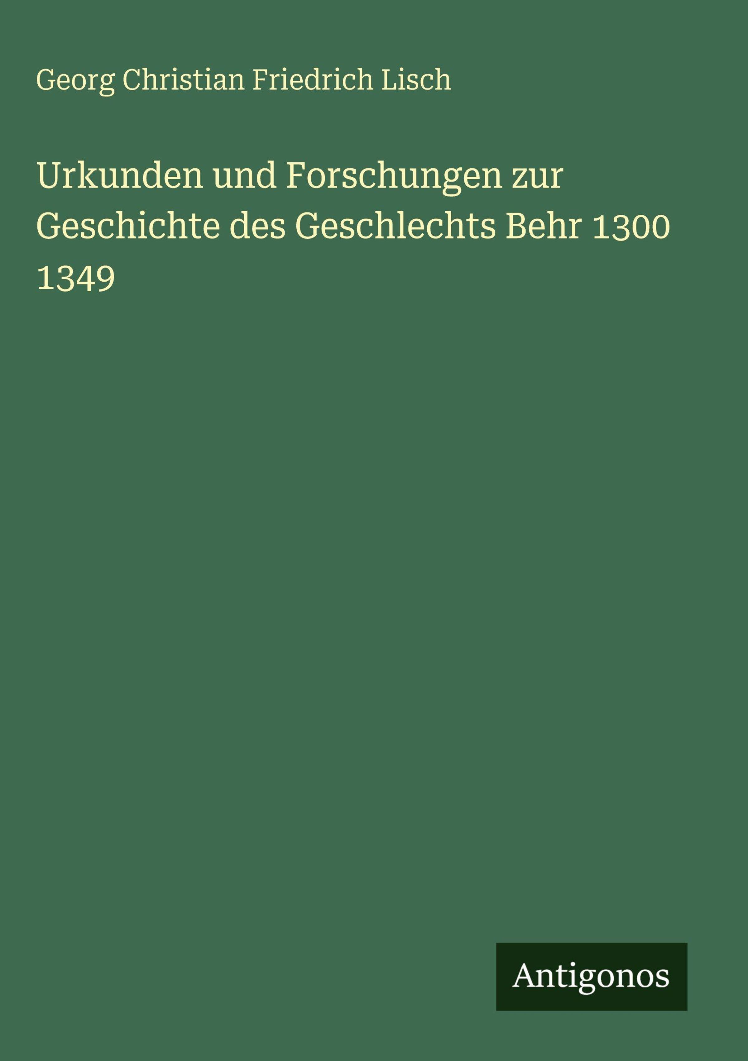 Georg Christian Friedrich Lisch: Urkunden und Forschungen zur Geschichte des Geschlechts Behr 1300 1349, Gebunden