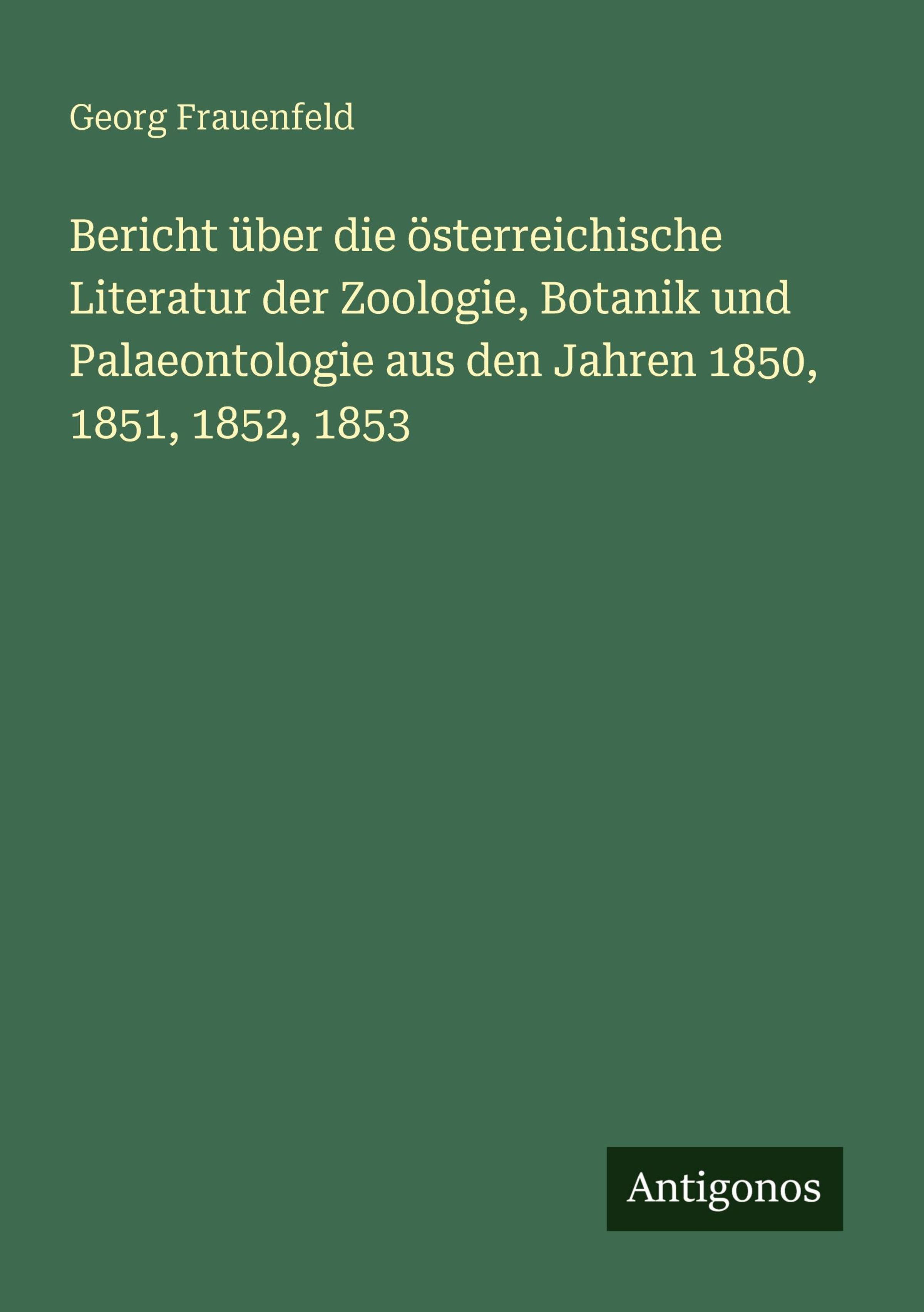 Georg Frauenfeld: Bericht über die österreichische Literatur der Zoologie, Botanik und Palaeontologie aus den..., Kartoniert / Broschiert