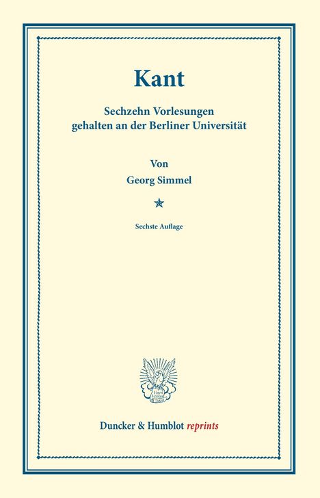 Die Absicht dieses Buches ist keine philosophie-geschichtliche, sondern eine rein philosophische. Es gilt ausschließlich, diejenigen Kerngedanken, mit denen Kant ein neues Weltbild gegründet hat, in das zeitlose Inventar des philosophischen Besitzes und wenigstens annäherungsweise wird ein solcher auch zeitlich bedingten Wesen erwerbbar sein einzustellen, unabhängig von allen Anwendungen und Ergänzungen, die zwar innerhalb des Kantischen Gesamtsystems, nicht aber nach inneren und für die Weltanschauung entscheidenden Gesichtspunkten mit jenen Hauptsachen verbunden sind. Aus dem Vorwort von Georg Simmel