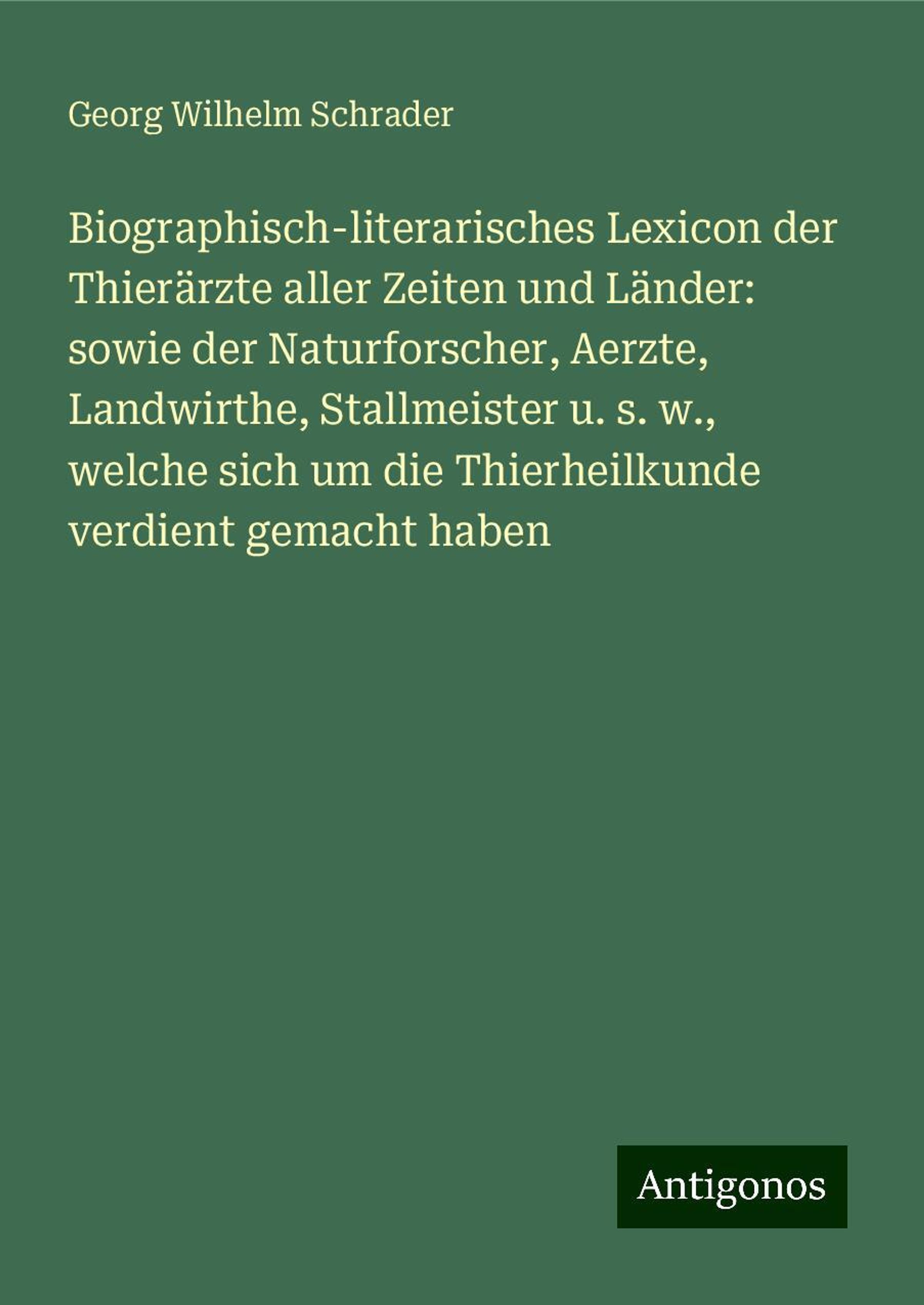Schrader, G: Biographisch-literarisches Lexicon der Thierärz
