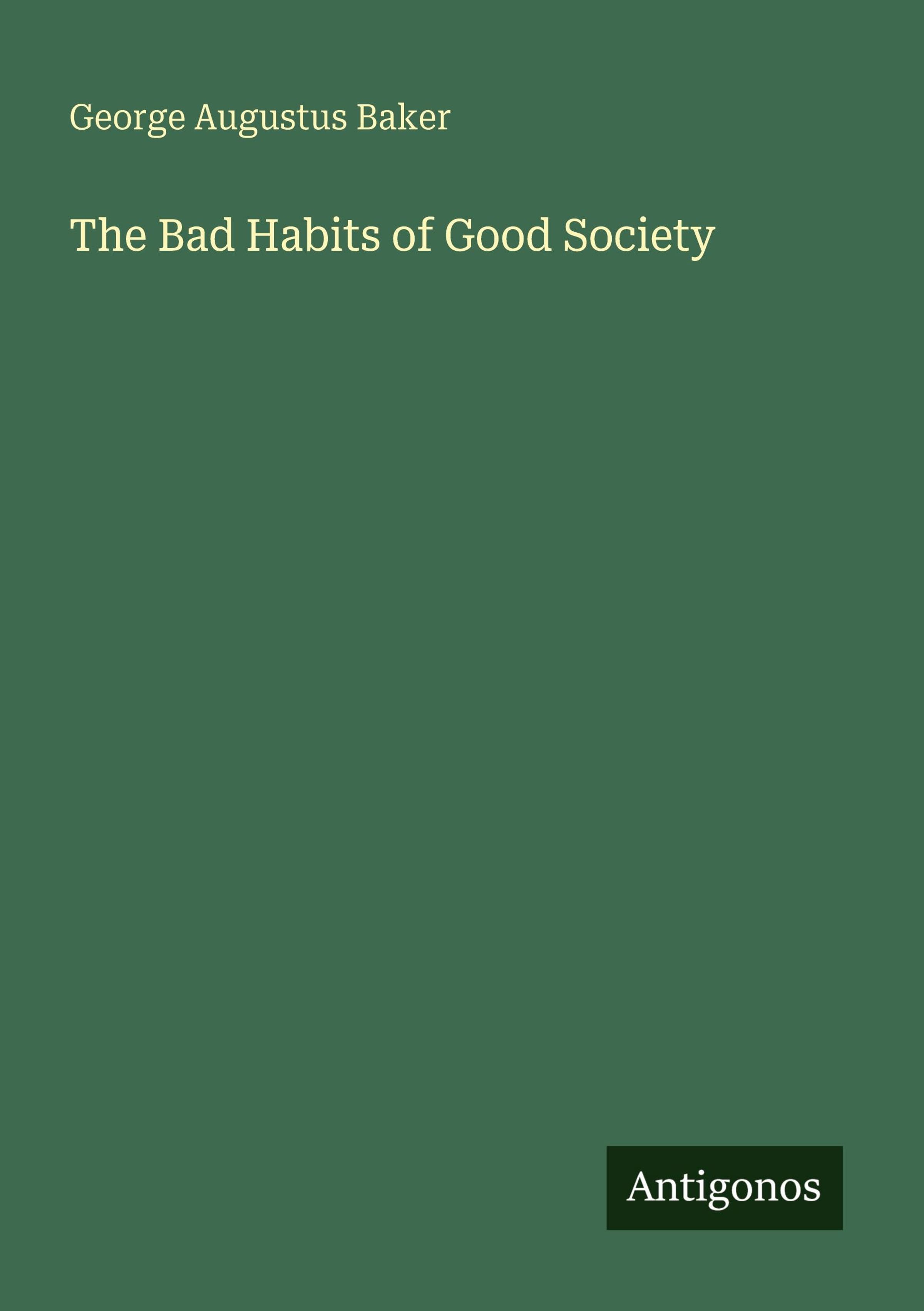 George Augustus Baker: The Bad Habits of Good Society, Kartoniert / Broschiert